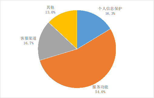 2024年第四季度,互联网信息服务投诉平台收到的互联网用户投诉中,服务功能类投诉占比54.0%,客服渠道类投诉占比16.7%,个人信息保护类投诉占比16.3%,其他类投诉占比13.0%。在接入平台的178家互联网企业中,广东长城宽带等3家企业投诉处理及时率较低(详见附件2),工业和信息化部已督促相关企业妥善处理用户反映的问题。