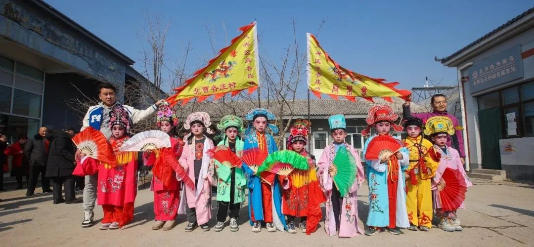 北曹各庄高跷会是大兴区级非物质文化遗产代表性项目,起源于清光绪年间,有着深厚的历史文化底蕴。北曹高跷的腿子高4尺6寸,演员扮梁山好汉故事角色形象,常用扇子、手绢、锣鼓等道具,脚踩木跷,以边游行、边舞蹈、边表演的形式演出。舞队人数十多人至数十人不等,以“踩街”和“撂场”和“定点台子”三种形式表演为主,角色间多单舞、对舞、群舞。在圆场撂膳时还有唱曲,有独唱、对口唱、群唱等形式,唱词内容多见历史人物典故。