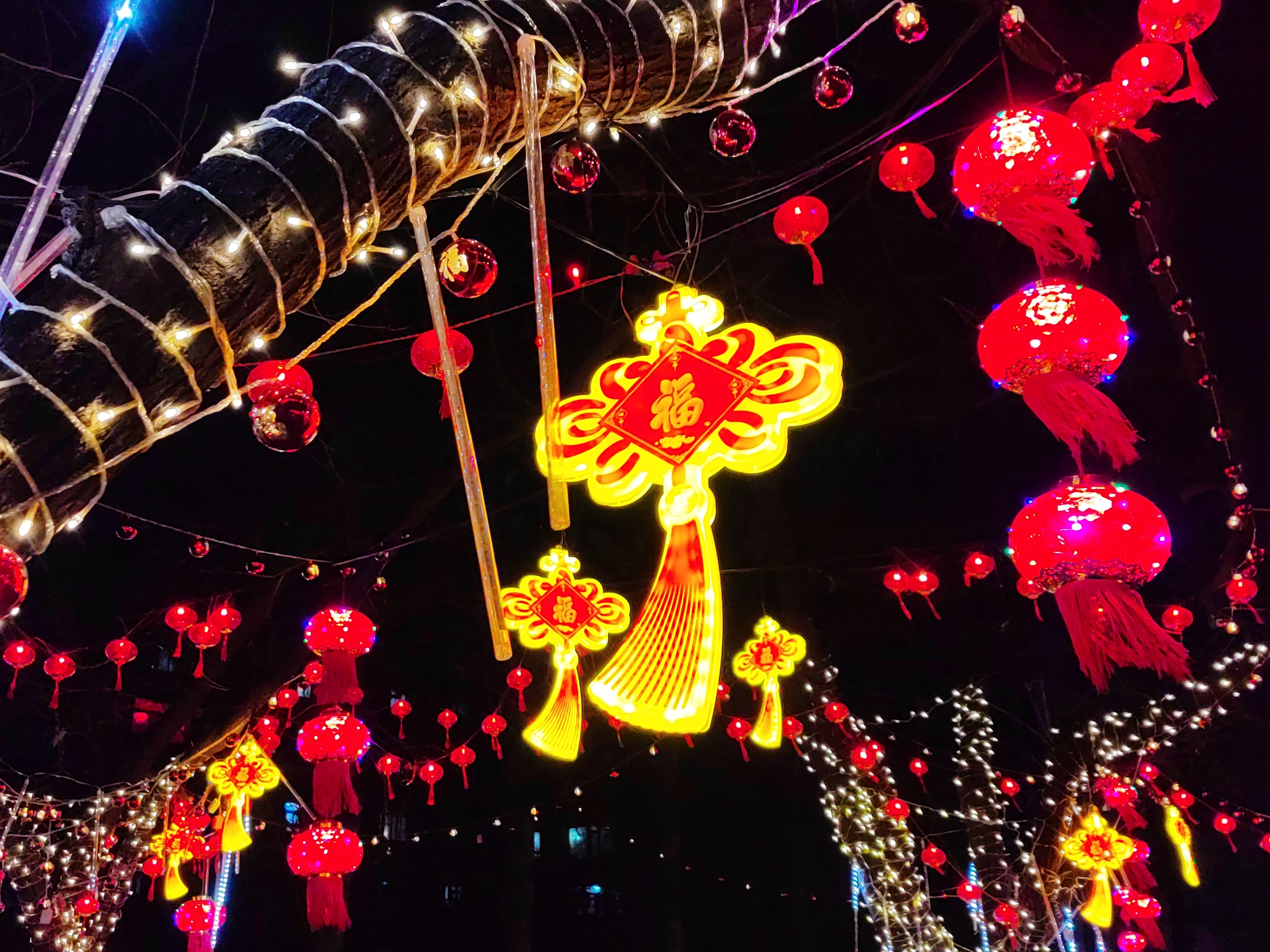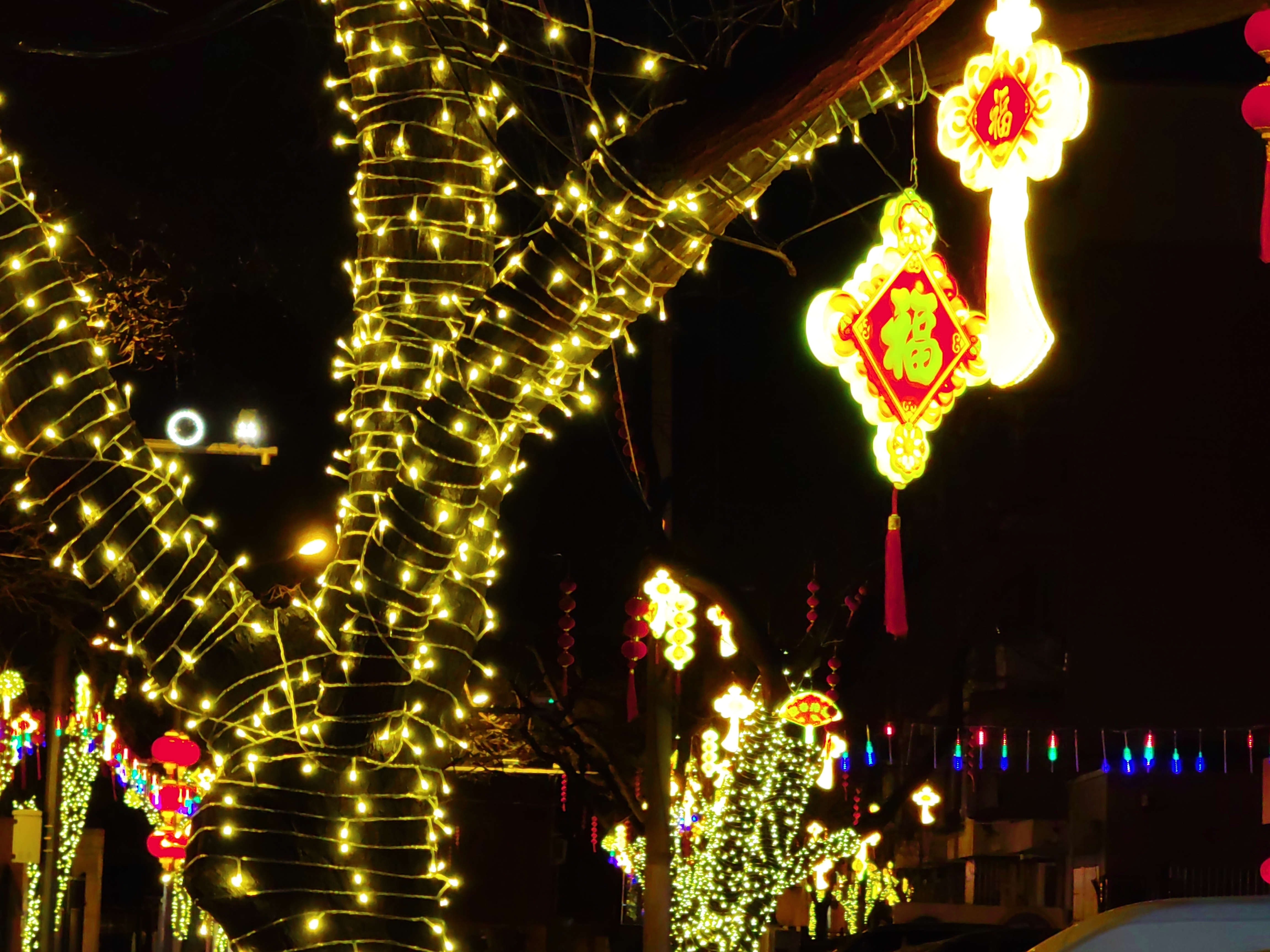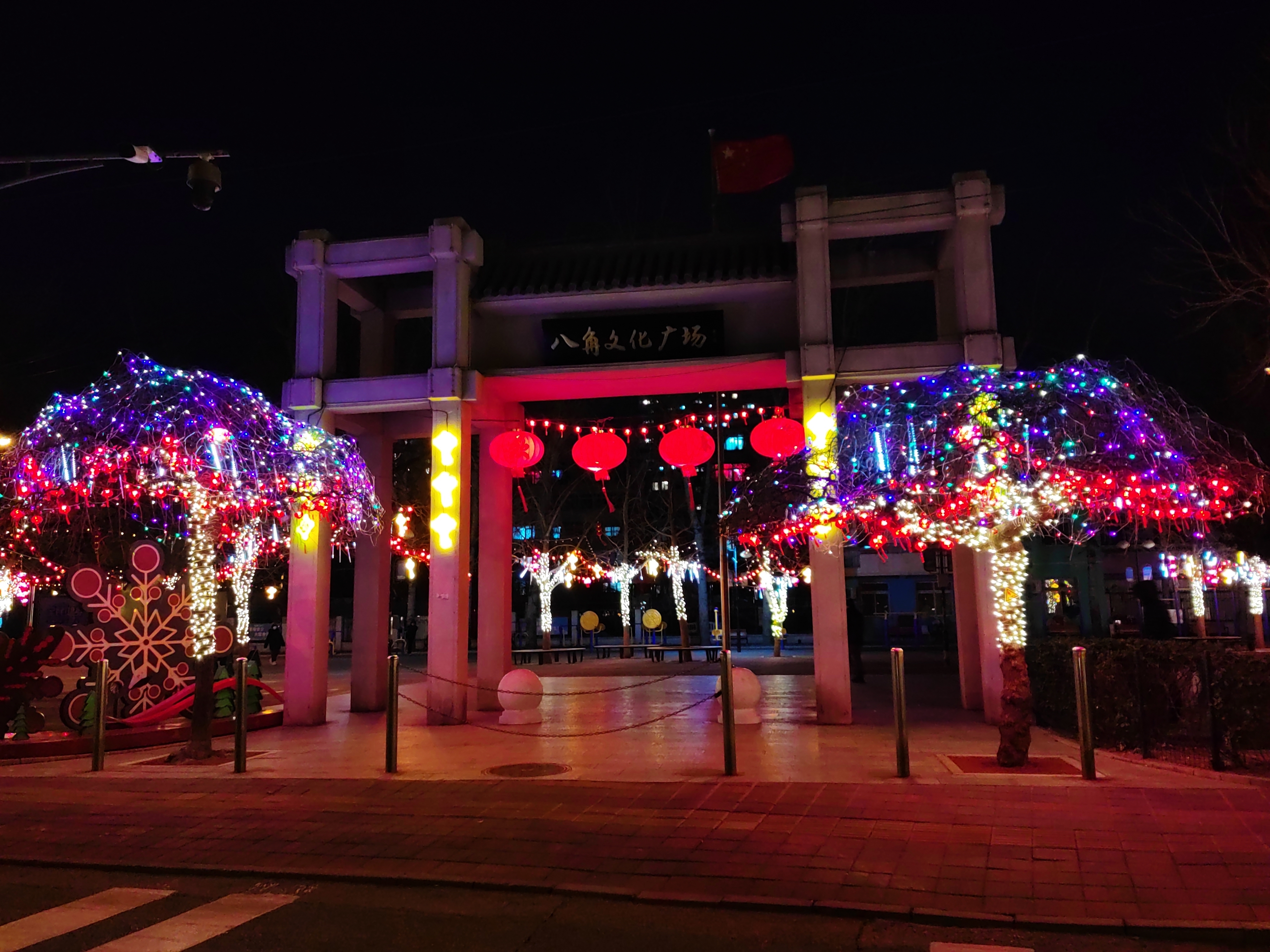 在八角北小街、八角北小路马路两侧以及在八角文化广场灯串及流星雨灯、LED小灯笼、中国结灯串及造型灯串,牌楼挂灯笼等装饰品,还加入“我爱八角”景观小品,营造炫彩缤纷的街区、广场形象,辖区居民纷纷驻足打卡。