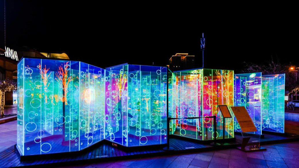 ▲火树银花不夜天,流光溢彩夜辉煌。国贸、蓝色港湾等商圈也换上了“新装”。