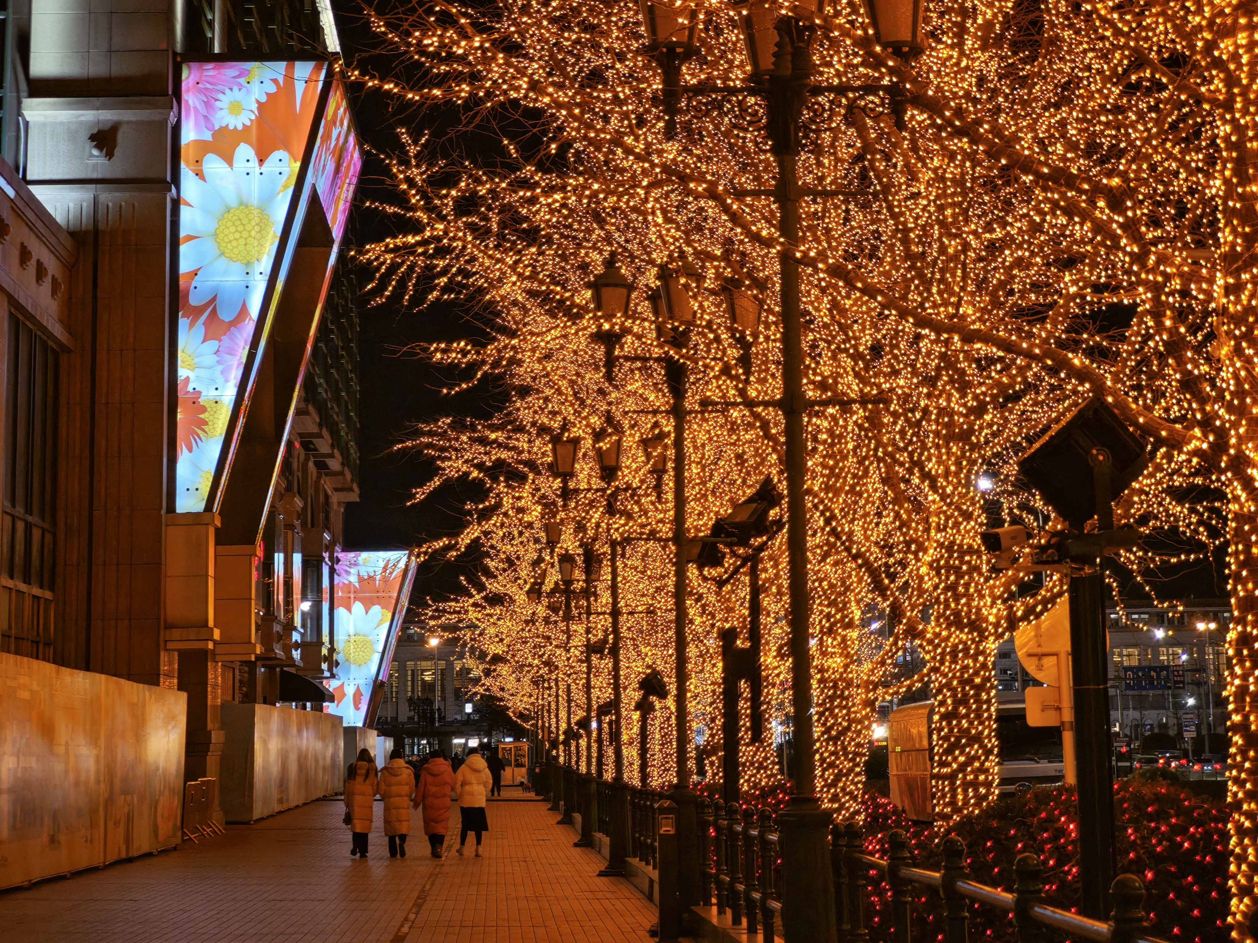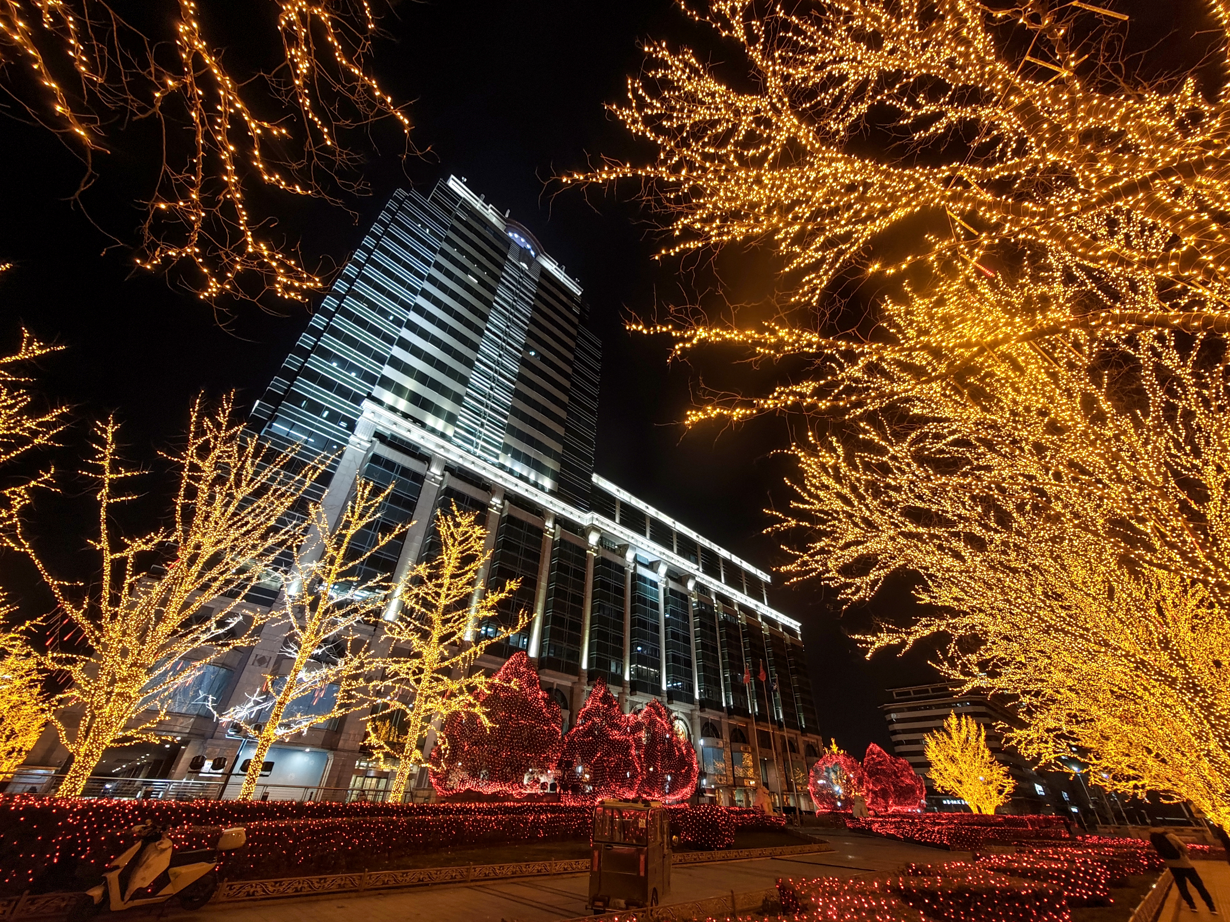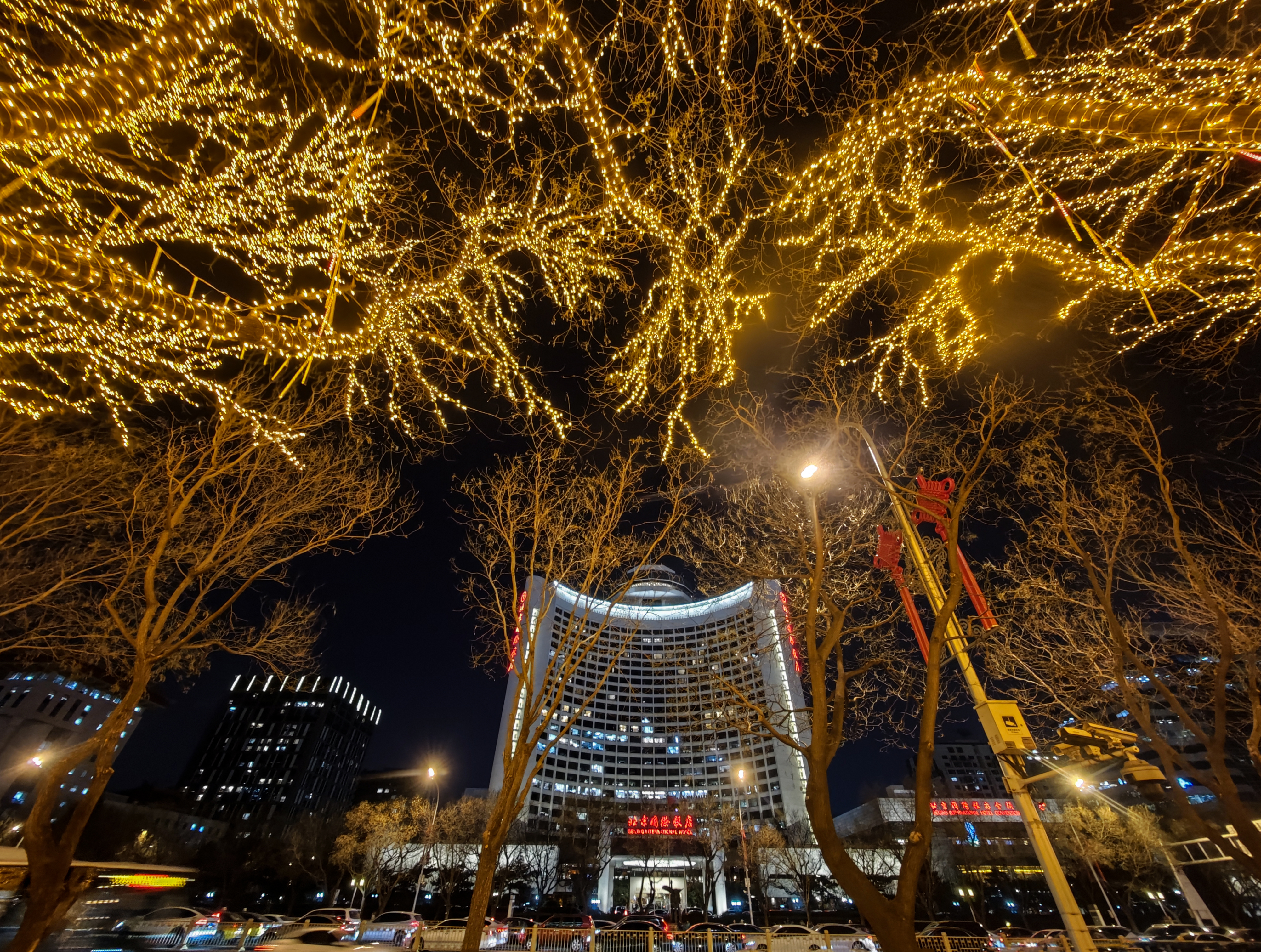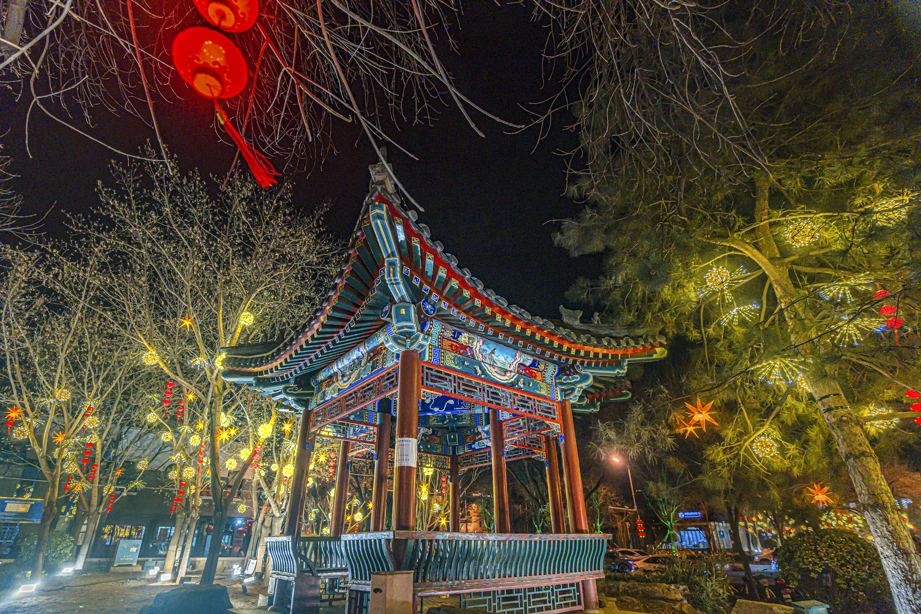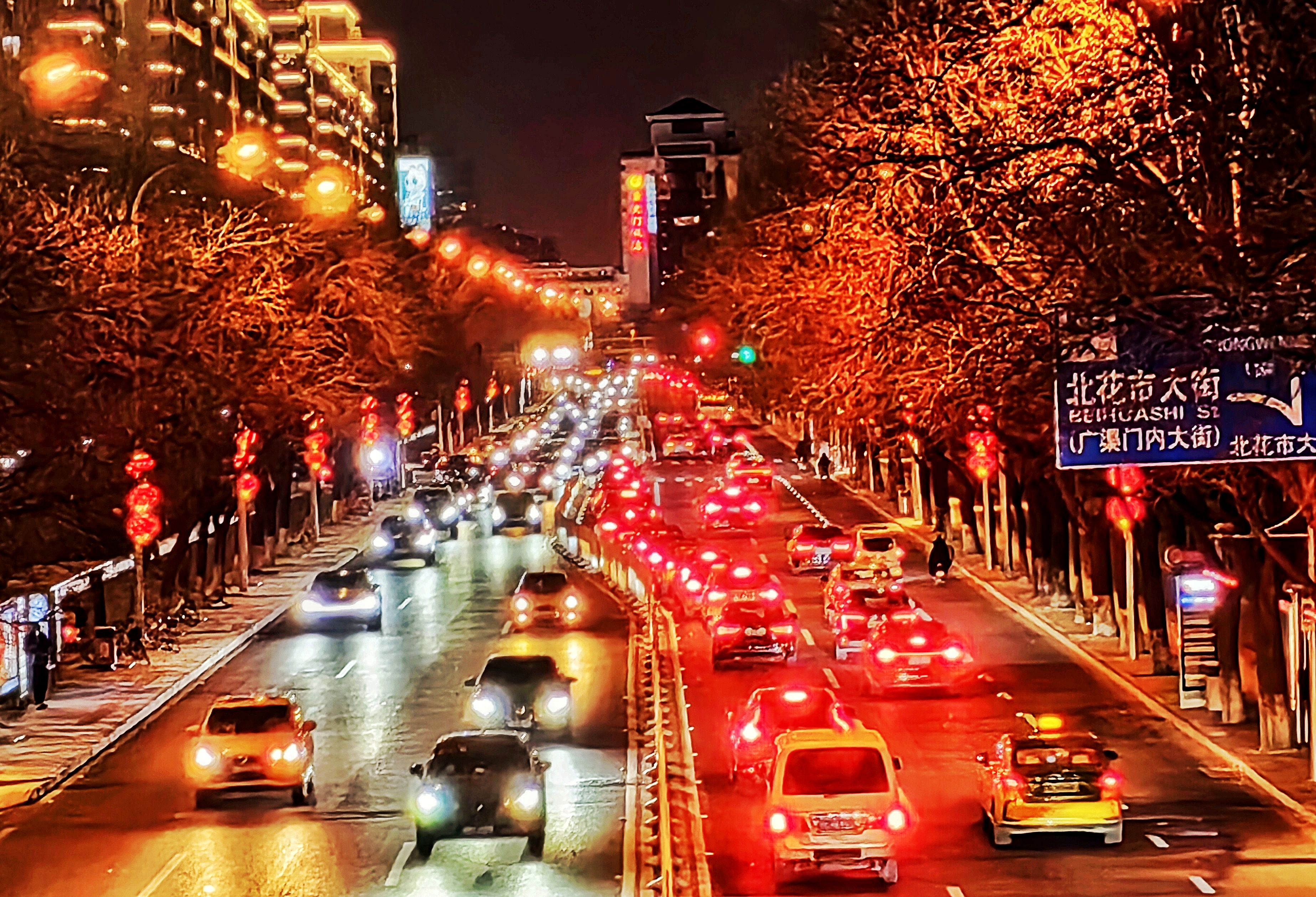 新春将至,年味正浓。夜色中的东城流光溢彩、如梦似幻。