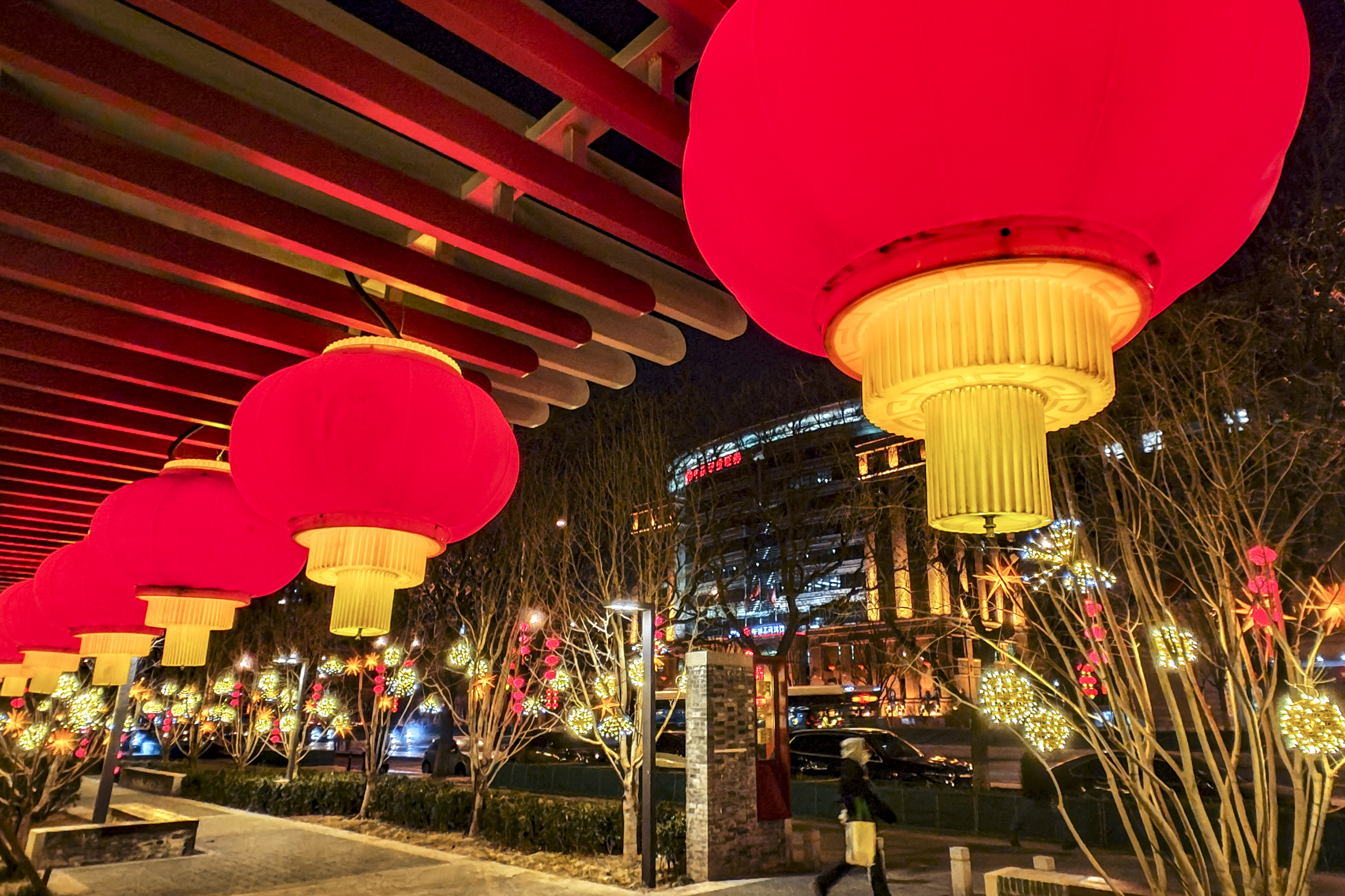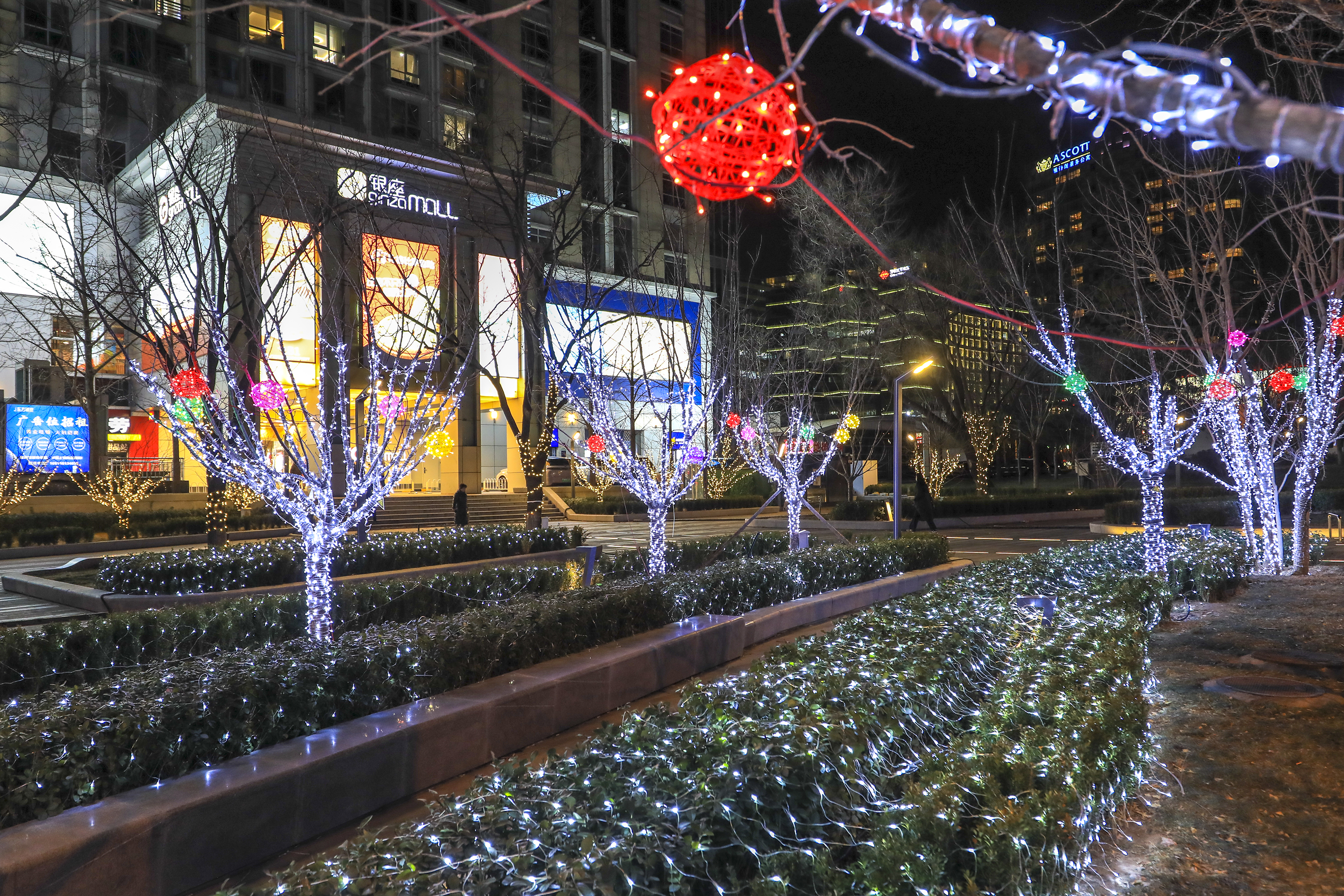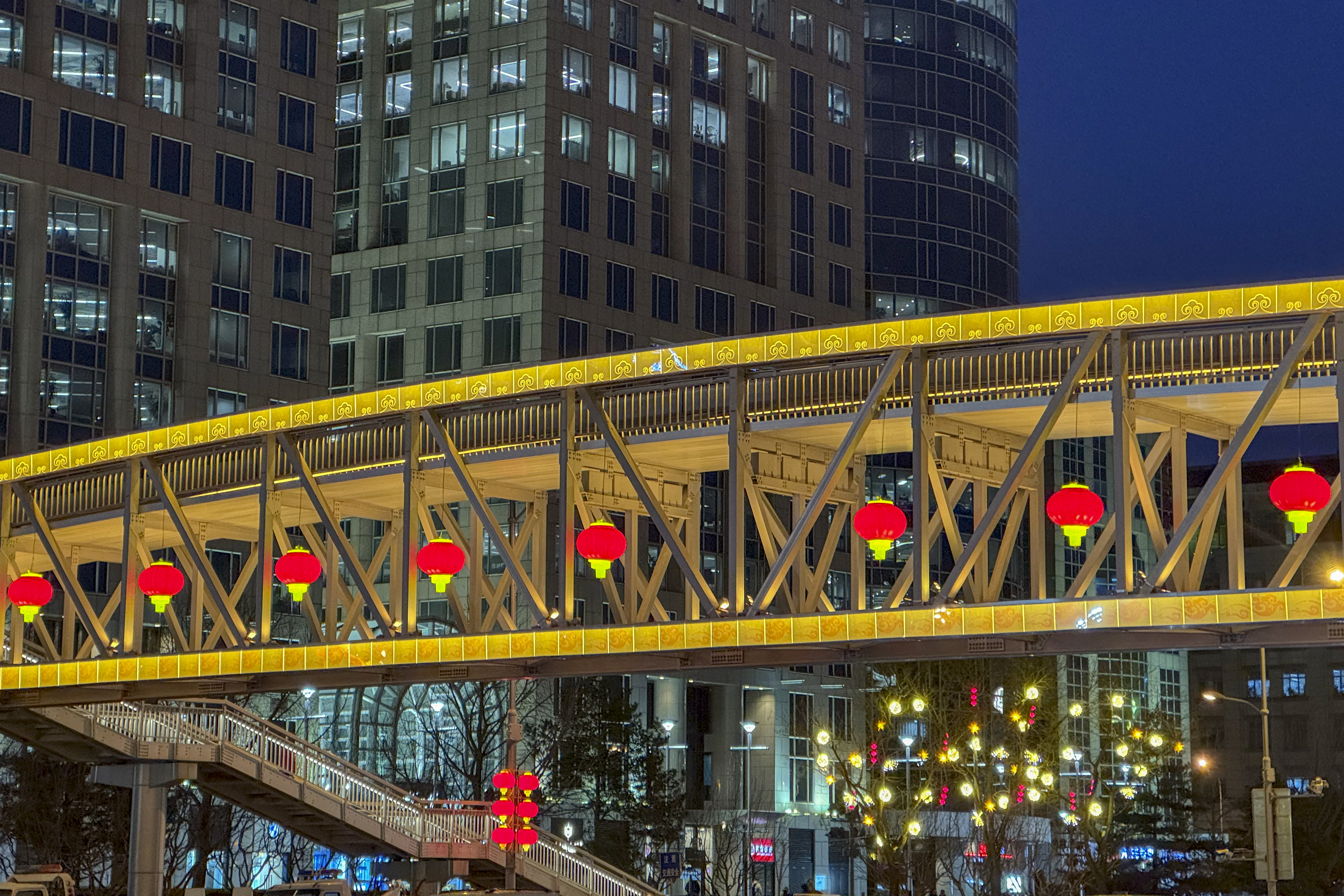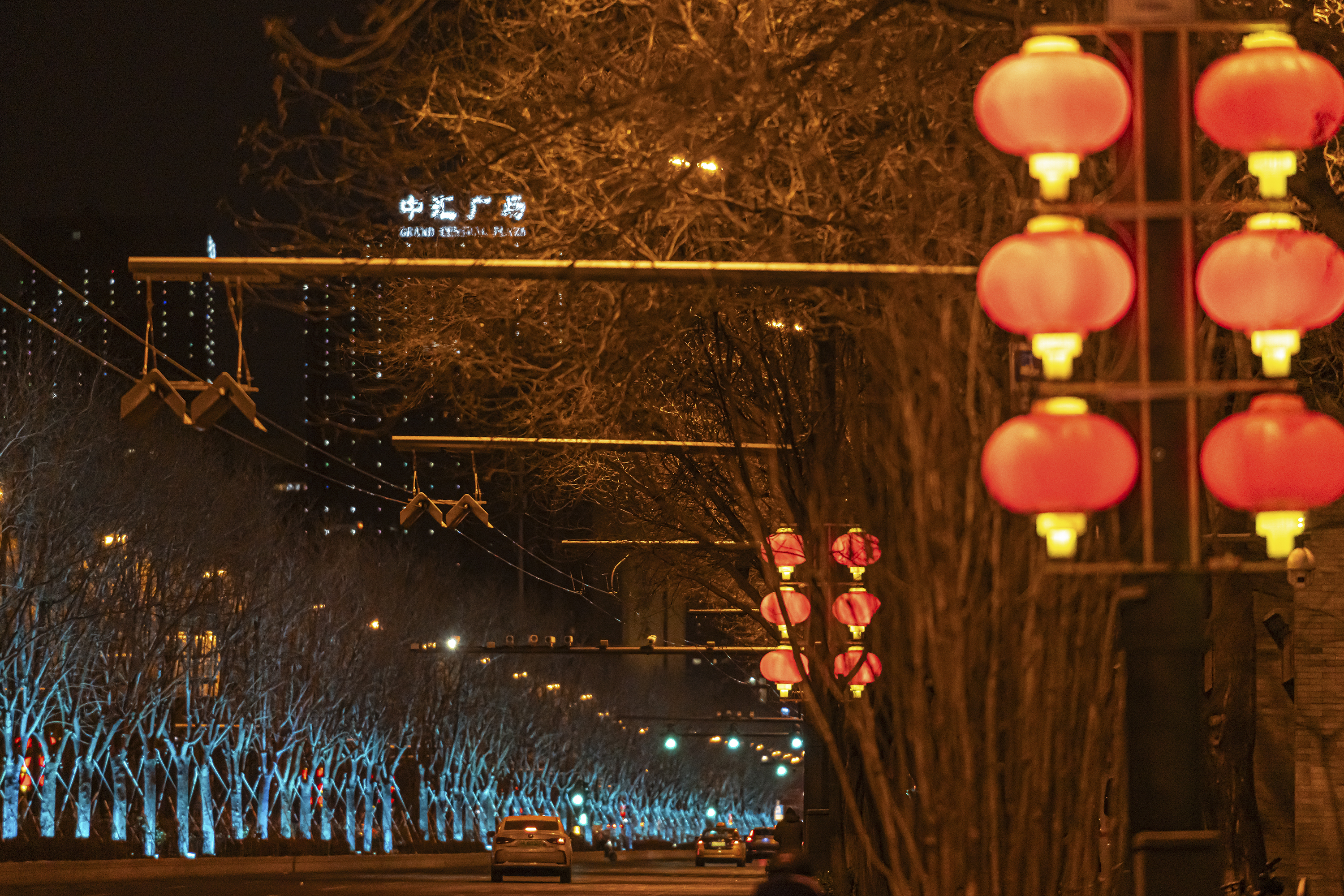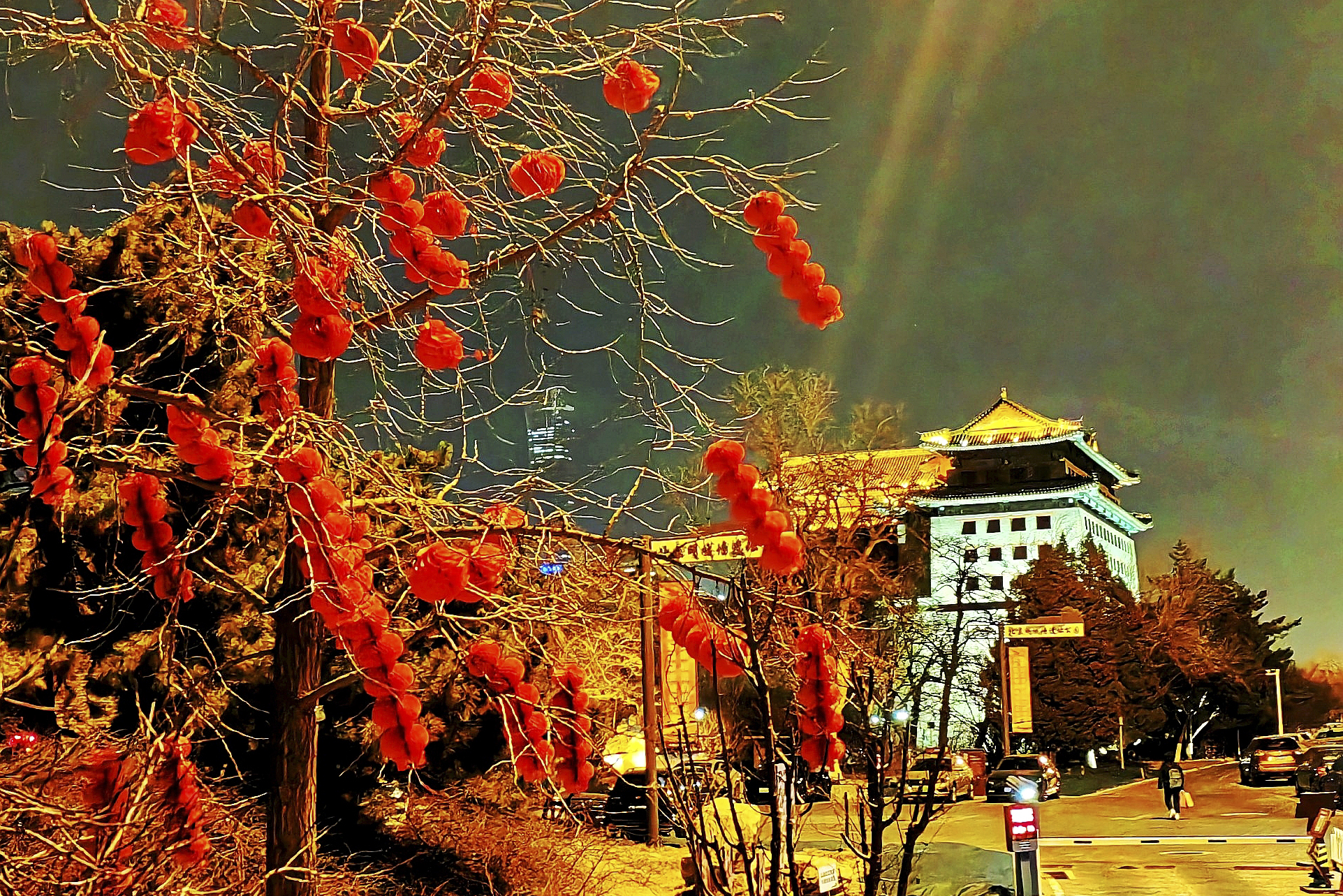 街头巷尾亮起来了,长安街、平安大街、崇雍大街、朝阜路、朝阳门南北小街等主要大街张灯结彩,盏盏灯火点亮新春佳节的喜庆。