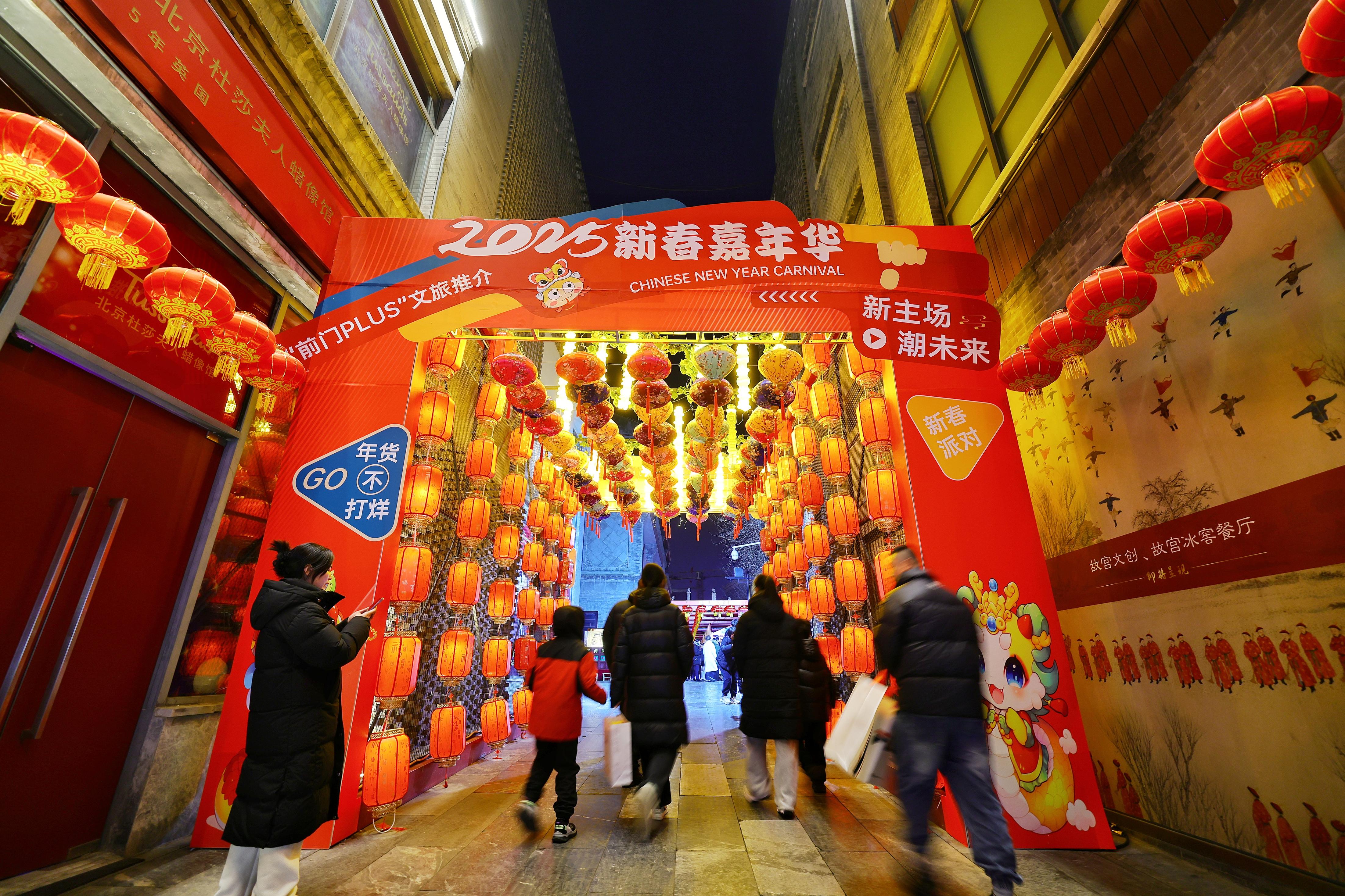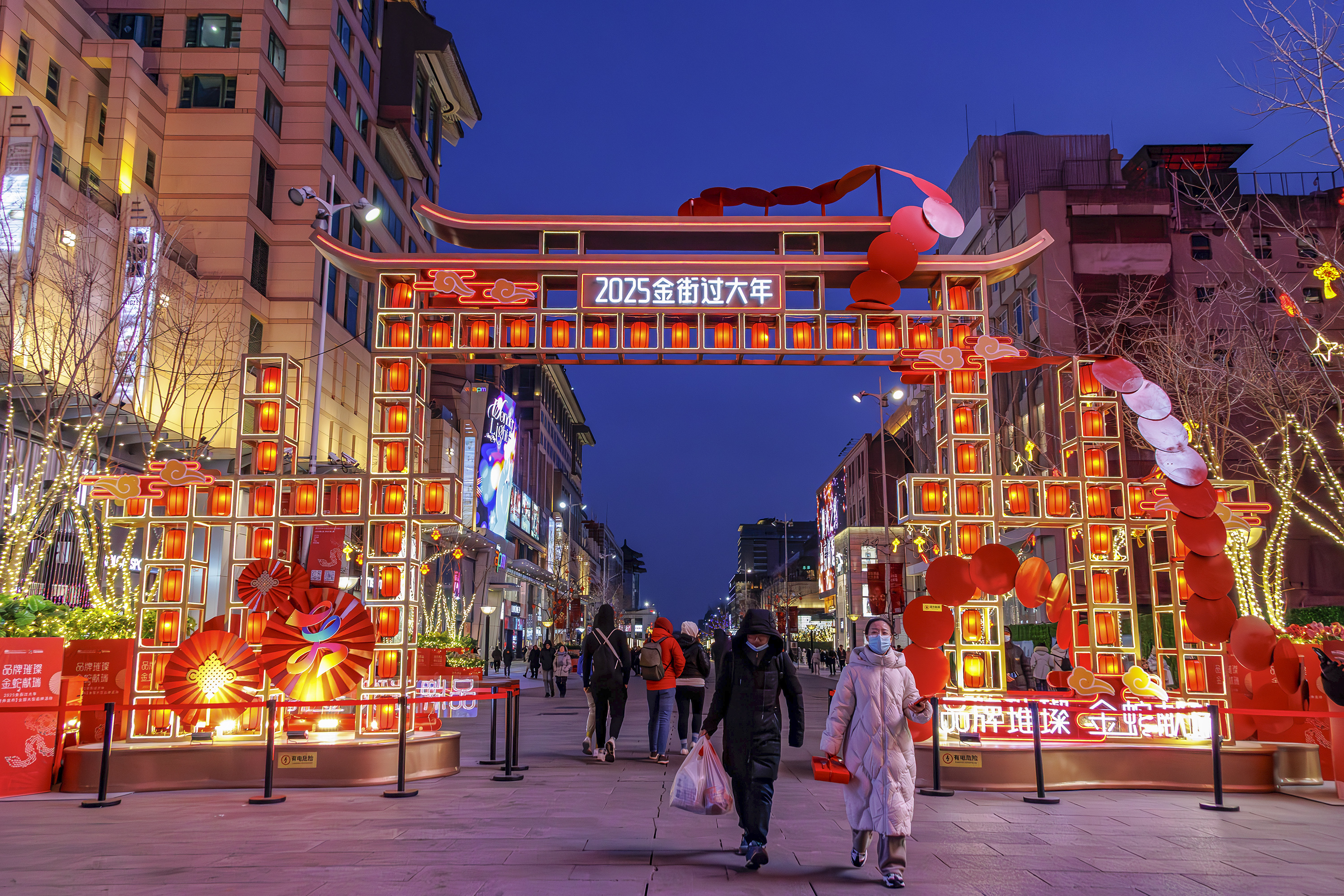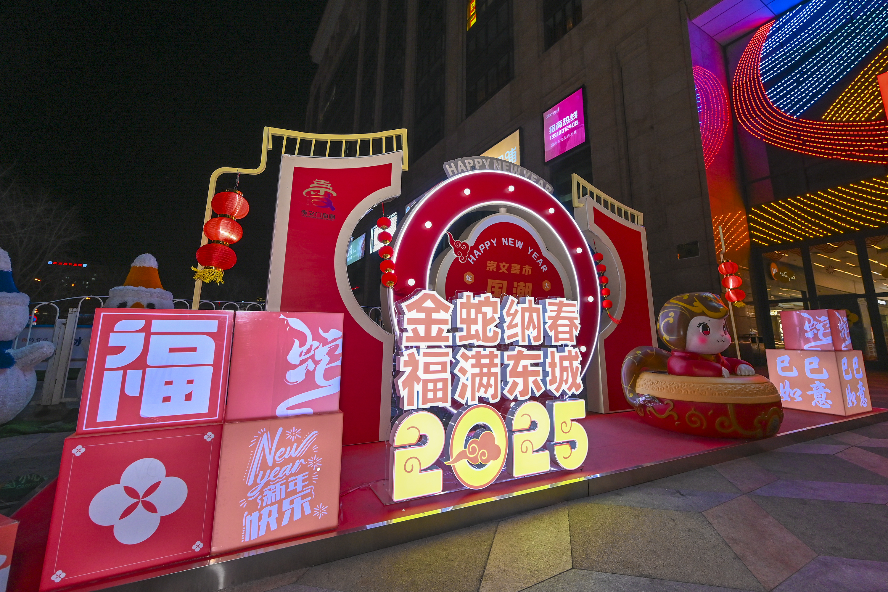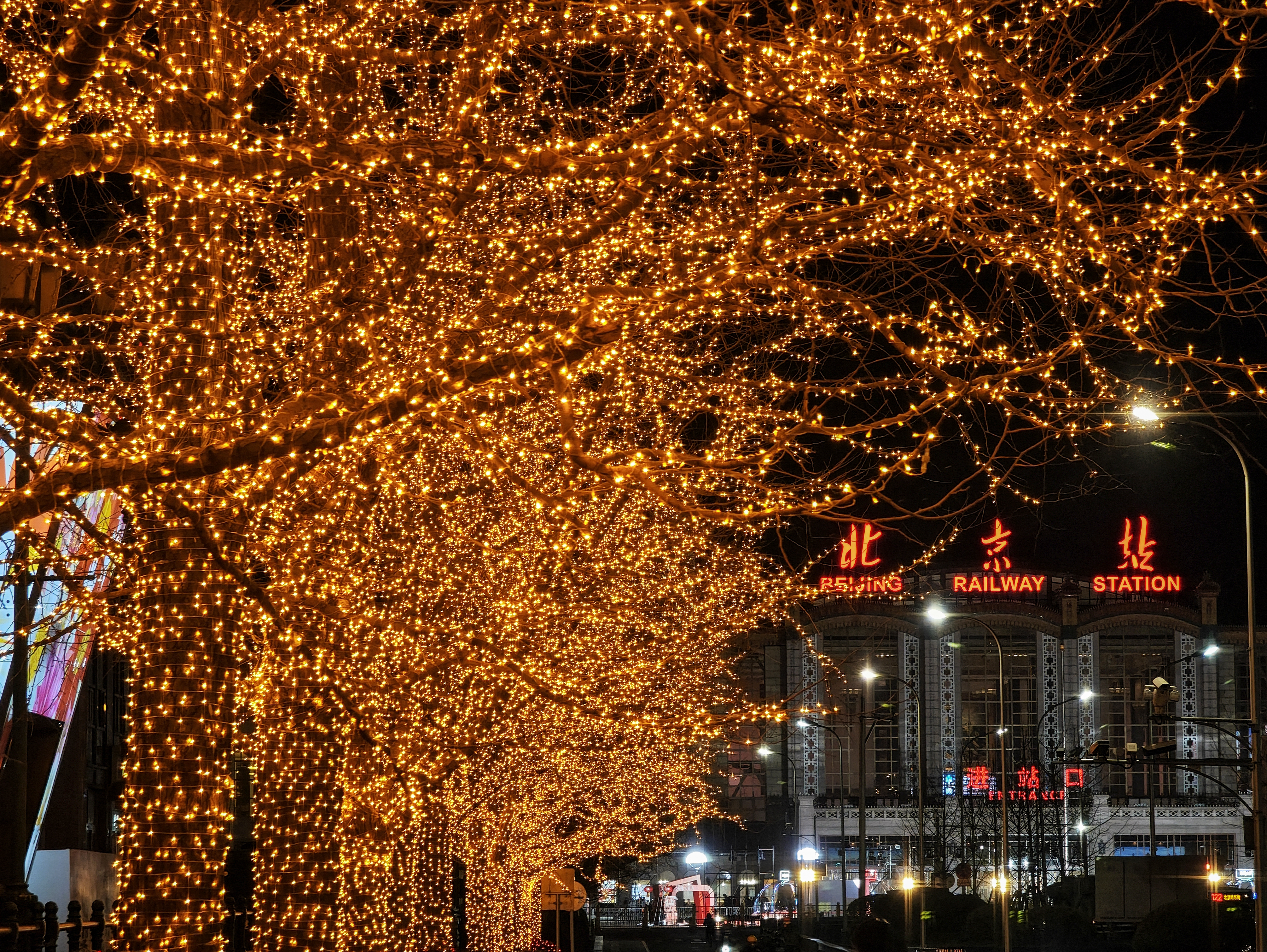 街头巷尾亮起来了,长安街、平安大街、崇雍大街、朝阜路、朝阳门南北小街等主要大街张灯结彩,盏盏灯火点亮新春佳节的喜庆。