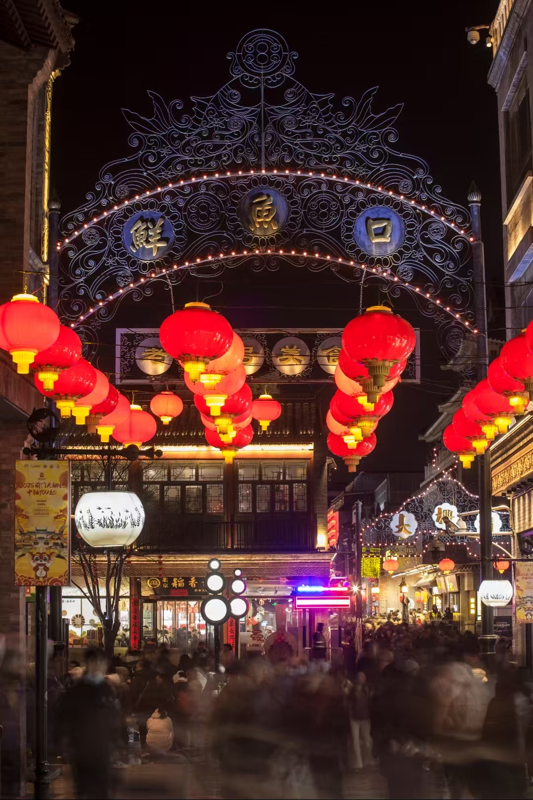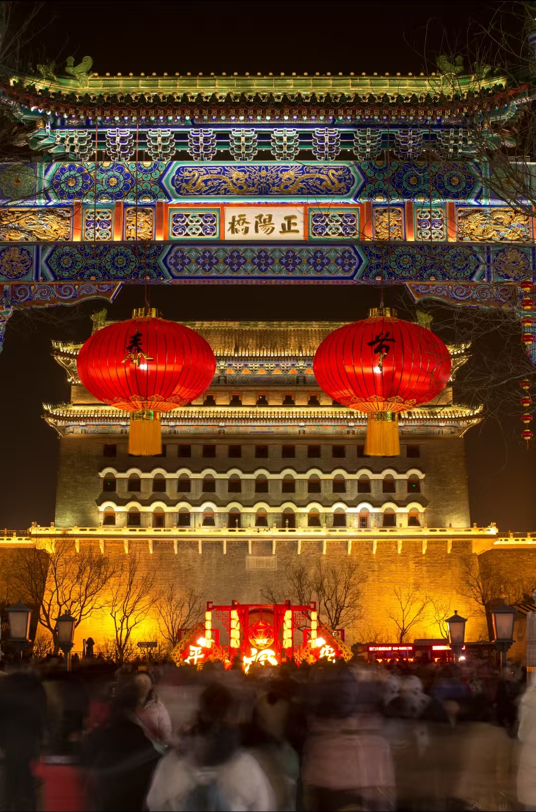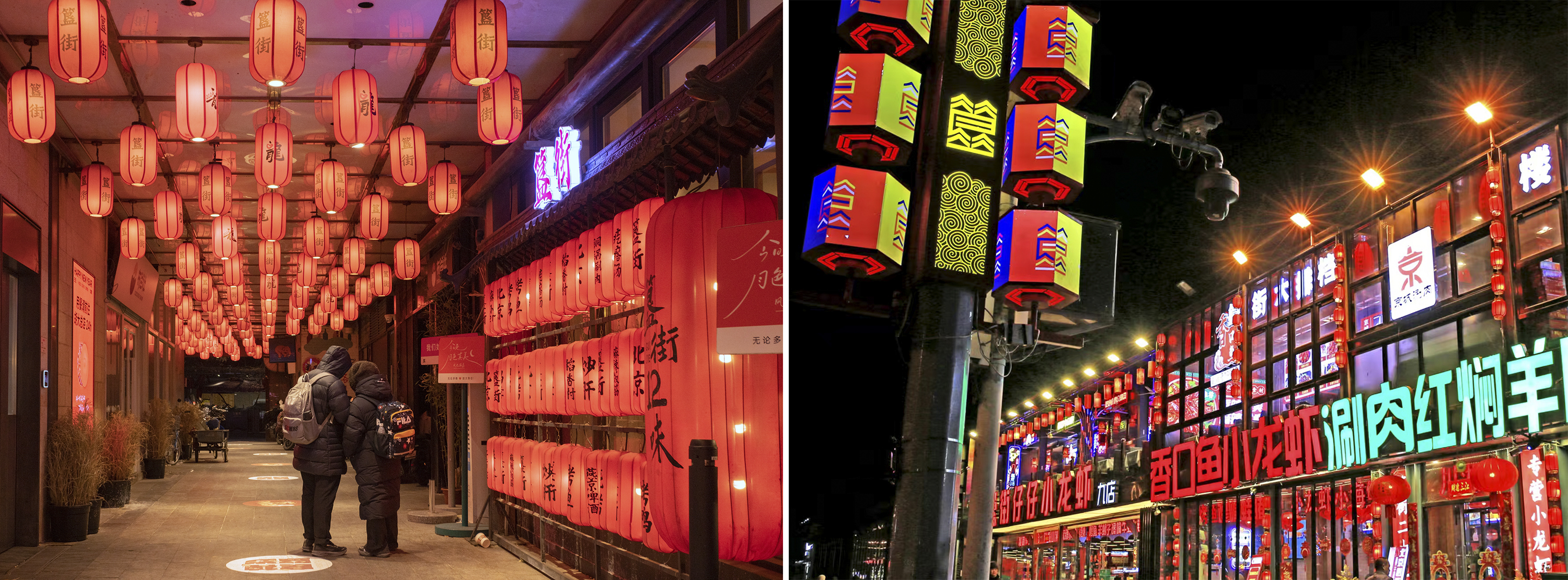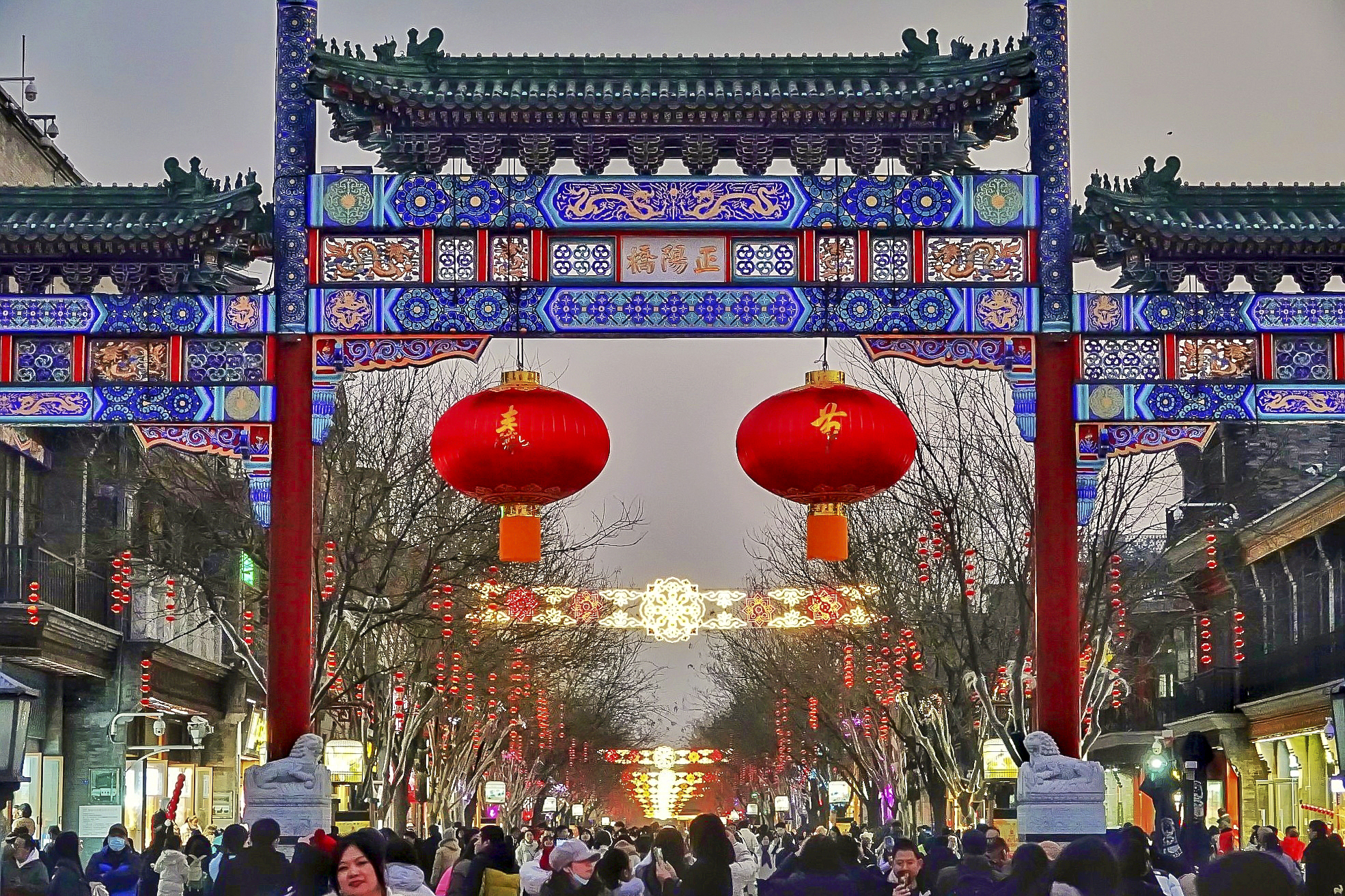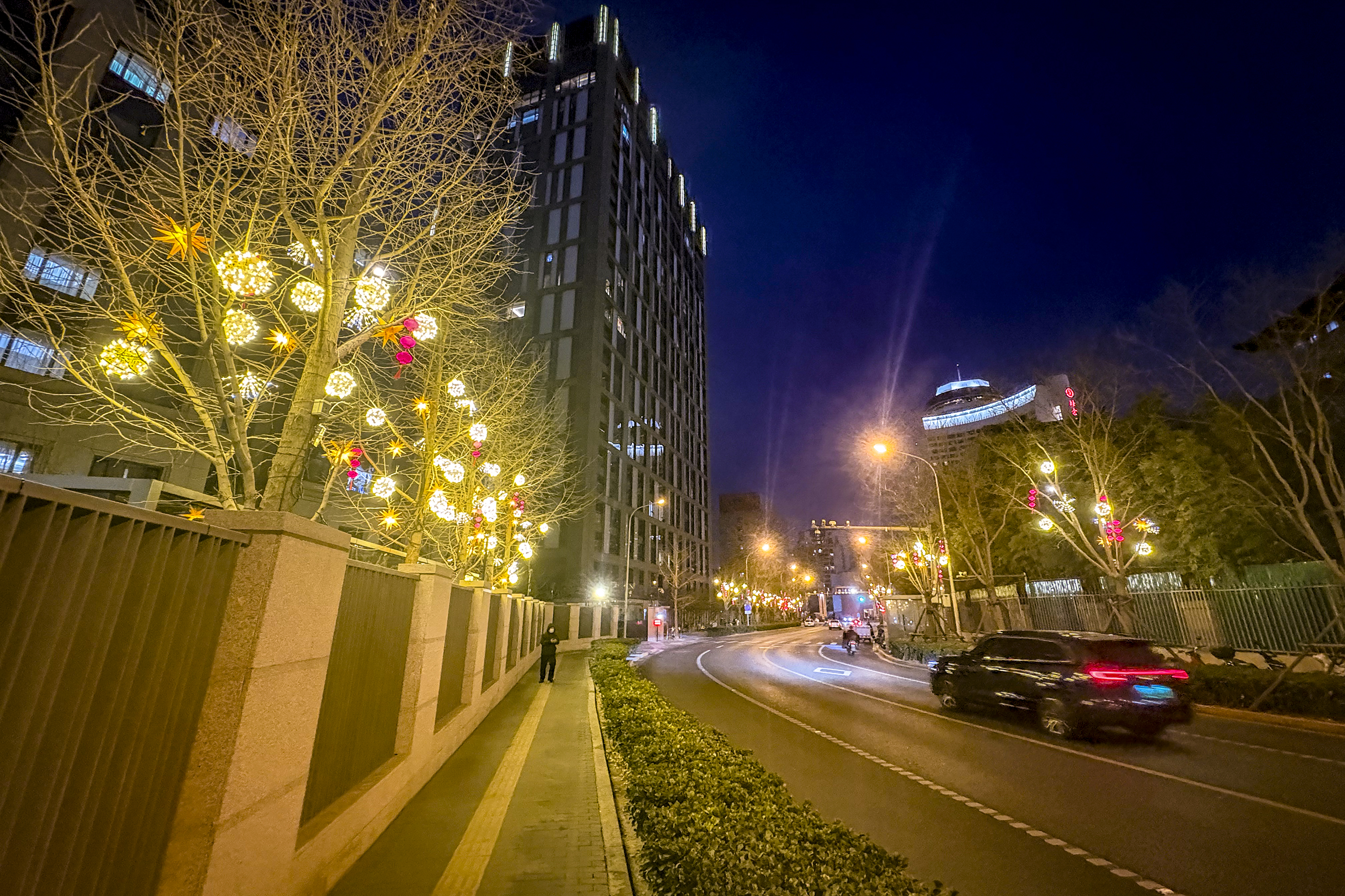 街头巷尾亮起来了,长安街、平安大街、崇雍大街、朝阜路、朝阳门南北小街等主要大街张灯结彩,盏盏灯火点亮新春佳节的喜庆。