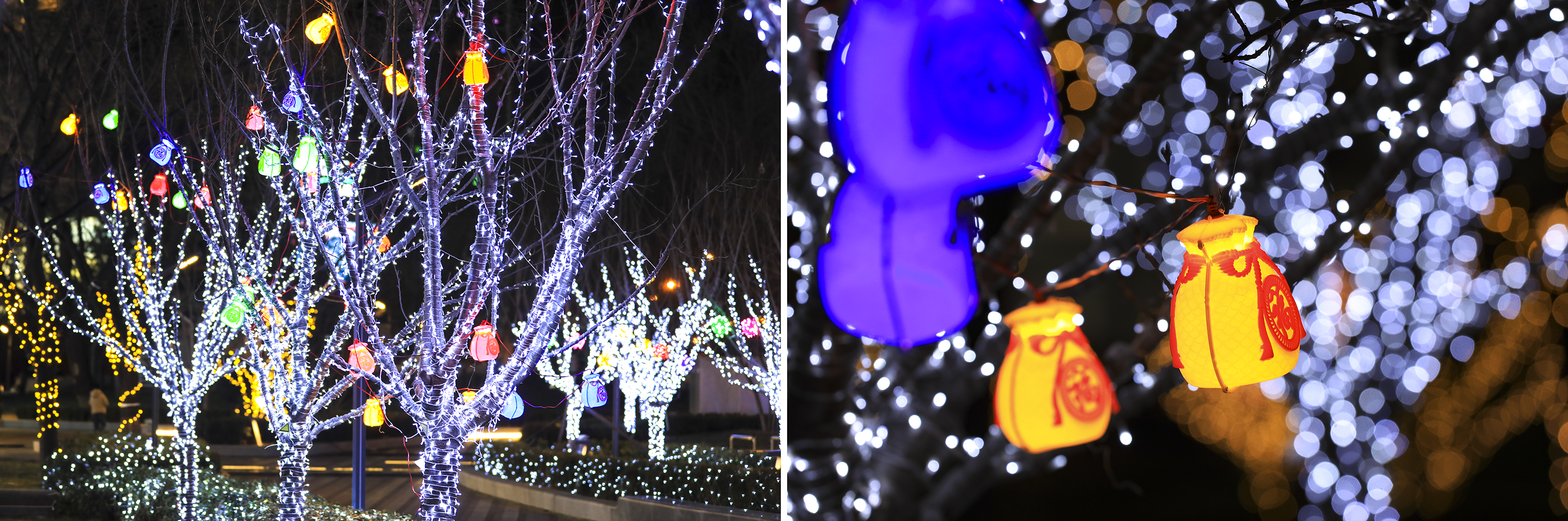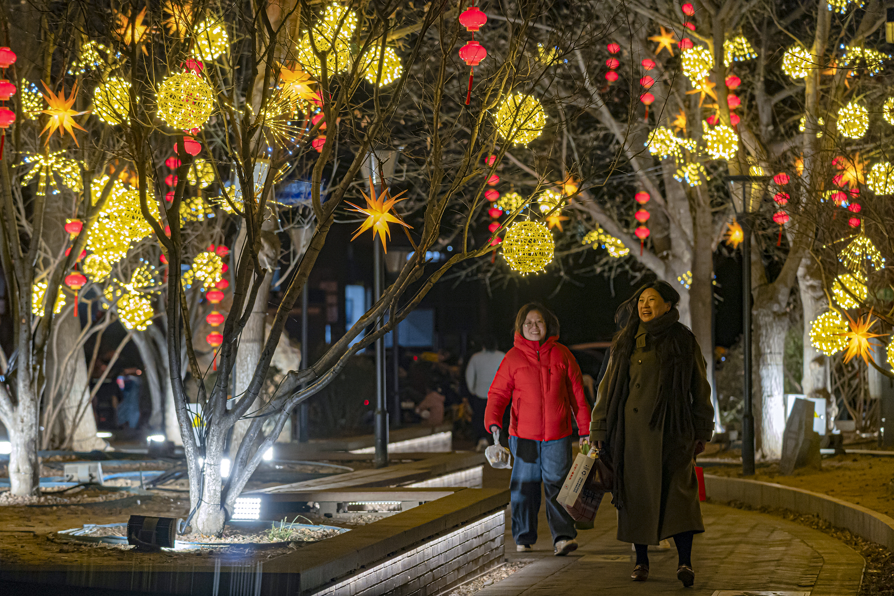 今年,东城区以“两轴、多点、多线、全覆盖”为总体布局,运用灯笼、彩灯、装饰树挂、景观小品等多种形式,打造多层立体、昼夜兼顾的景观效果,累计布置了全区74条道路,设置了2座景观小品、13处景观节点,共布置各类元素1.62万个,营造热烈浓郁的中国年味。