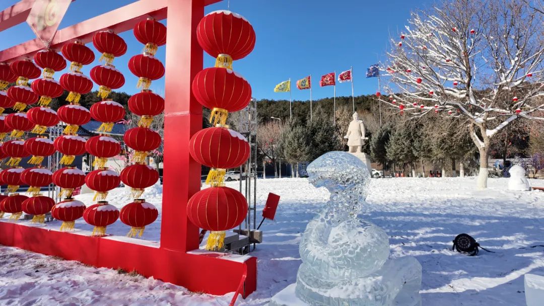 冰天雪地里,八旗广场中,地面覆盖上了一层冰雪,把整个广场打造成了“冰场”,静待小朋友们体验冰上运动的乐趣。溜冰、滑雪橇,各种运动,皆可上演;冰雕、雪景,琳琅景观,尽数鉴赏。得天独厚的冰雪、山海与人文融为一体,艺术与历史、文化交相辉映。