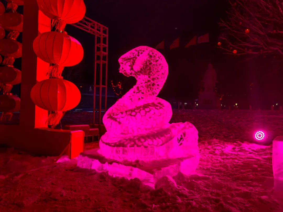 晶莹剔透的冰雕,在阳光下闪耀着梦幻般的光芒。“十二生肖”如家里的老少都围坐在一起,热闹非凡。白天,这些冰雕冰清玉洁,透过阳光可以看到雕刻的纹理、冰块的质感;夜晚,则变成璀璨夺目的冰灯,流光溢彩、令人留恋。