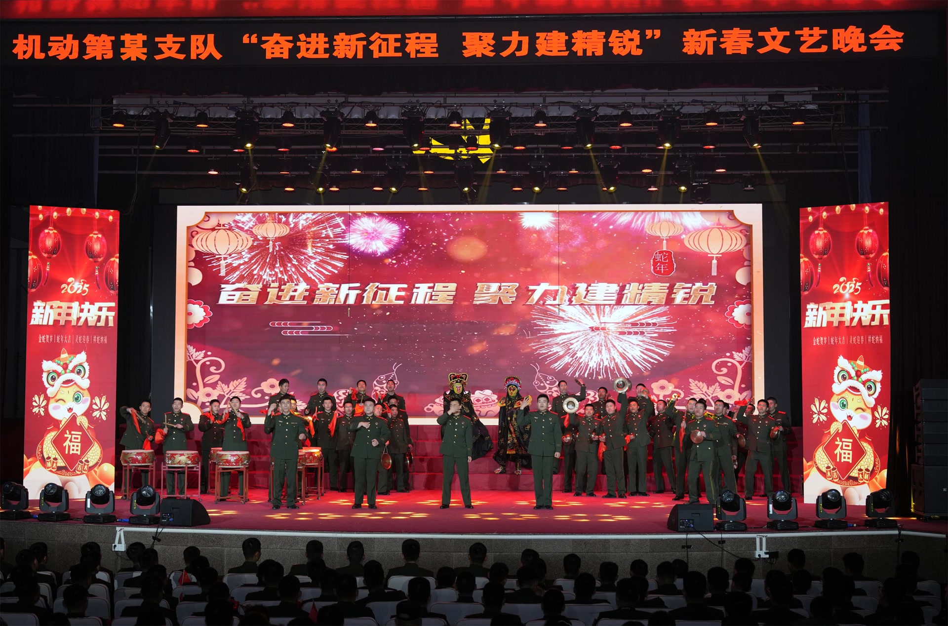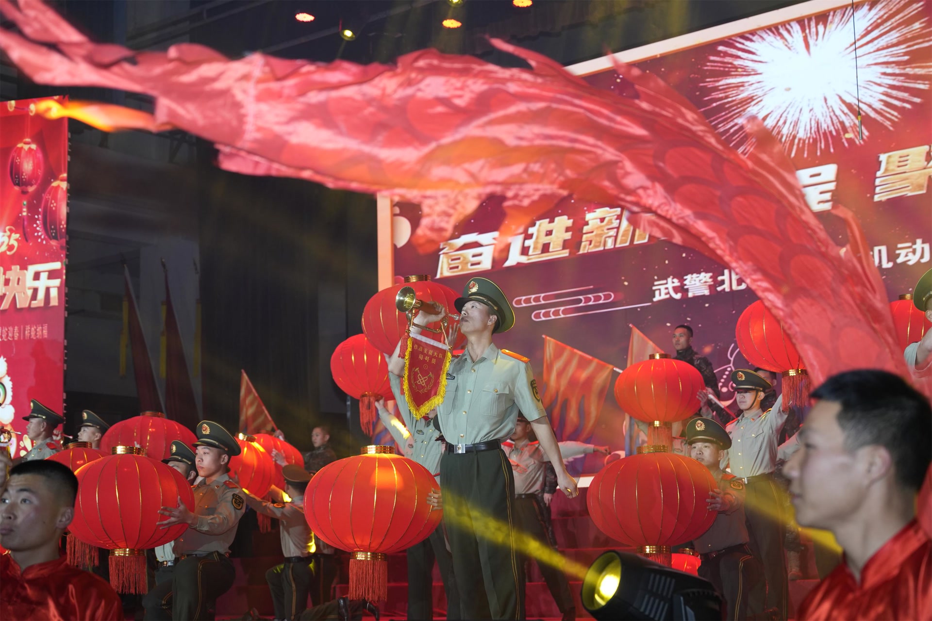 金蛇狂舞迎新春,军营欢喜过大年。在农历新年即将到来之际,武警北京总队机动某支队精心筹划“奋进新征程,聚力强军梦”春节晚会。