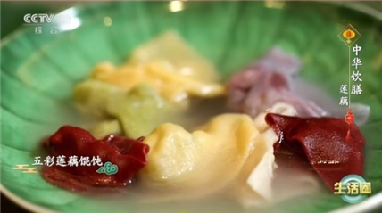 用果蔬汁来制作不同的颜色,让这道馄饨看起来五彩斑斓,十分诱人。