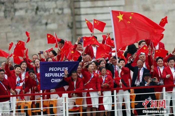 图为中国体育代表团亮相巴黎奥运会开幕式(资料图)。