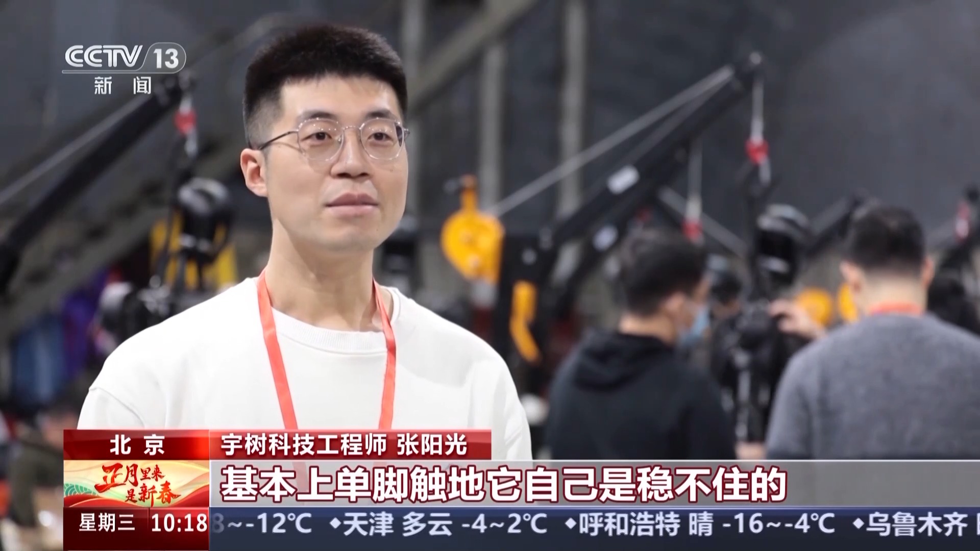 宇树科技工程师 张阳光:四足的机器人触地,很容易保持自己的平稳,但双足的机器人,基本上单脚触地它自己是稳不住的,其实还是保证它整个舞蹈动作里面,机器人自己的流畅性、稳定性,这是最重要的。
