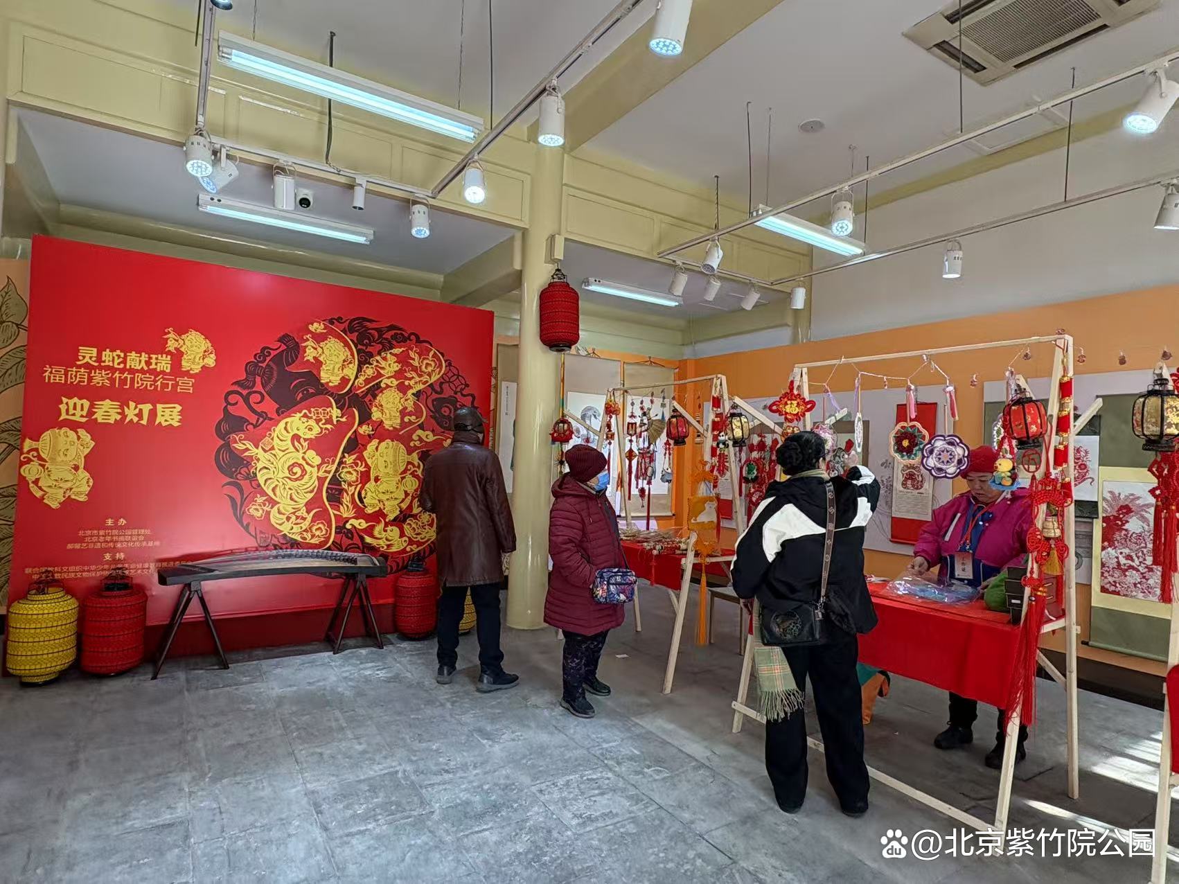 蛇年主题展览“灵蛇献瑞——民间传统文化艺术展”在紫竹院行宫展出中,为了丰富展览内容,庆祝新春佳节,从正月初一到正月十五元宵节期间,公园特别推出“灵蛇献瑞——福荫紫竹院行宫新春灯展”及非遗小市集。