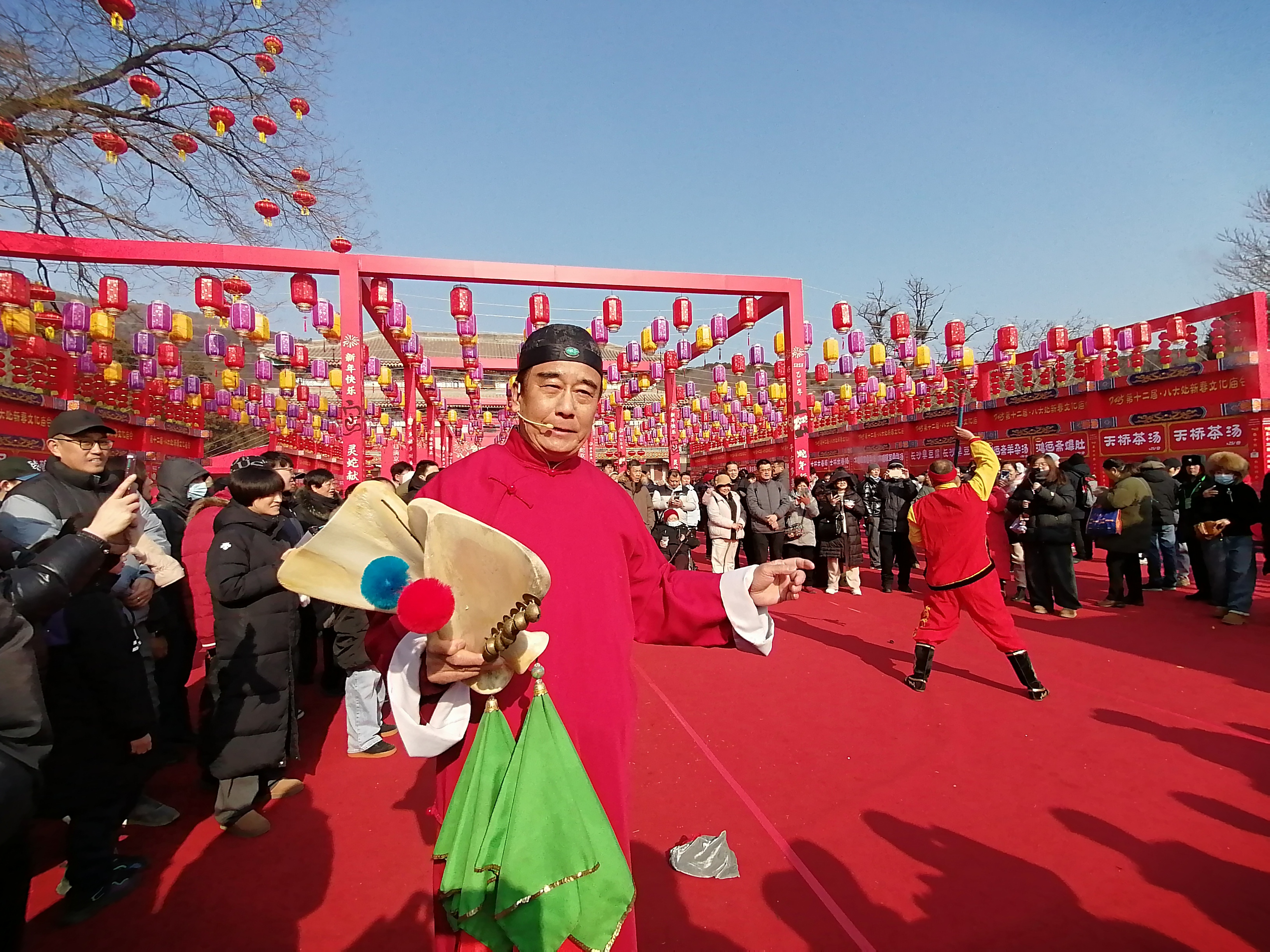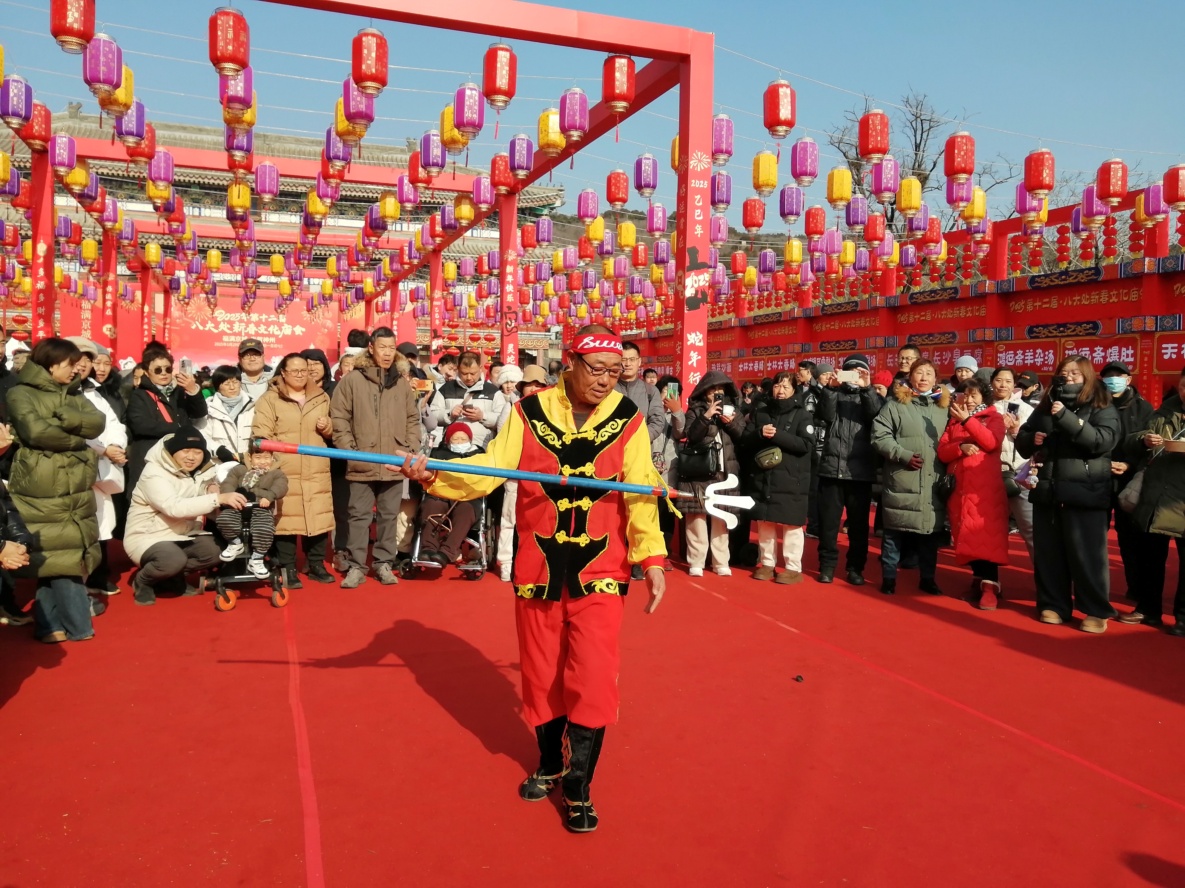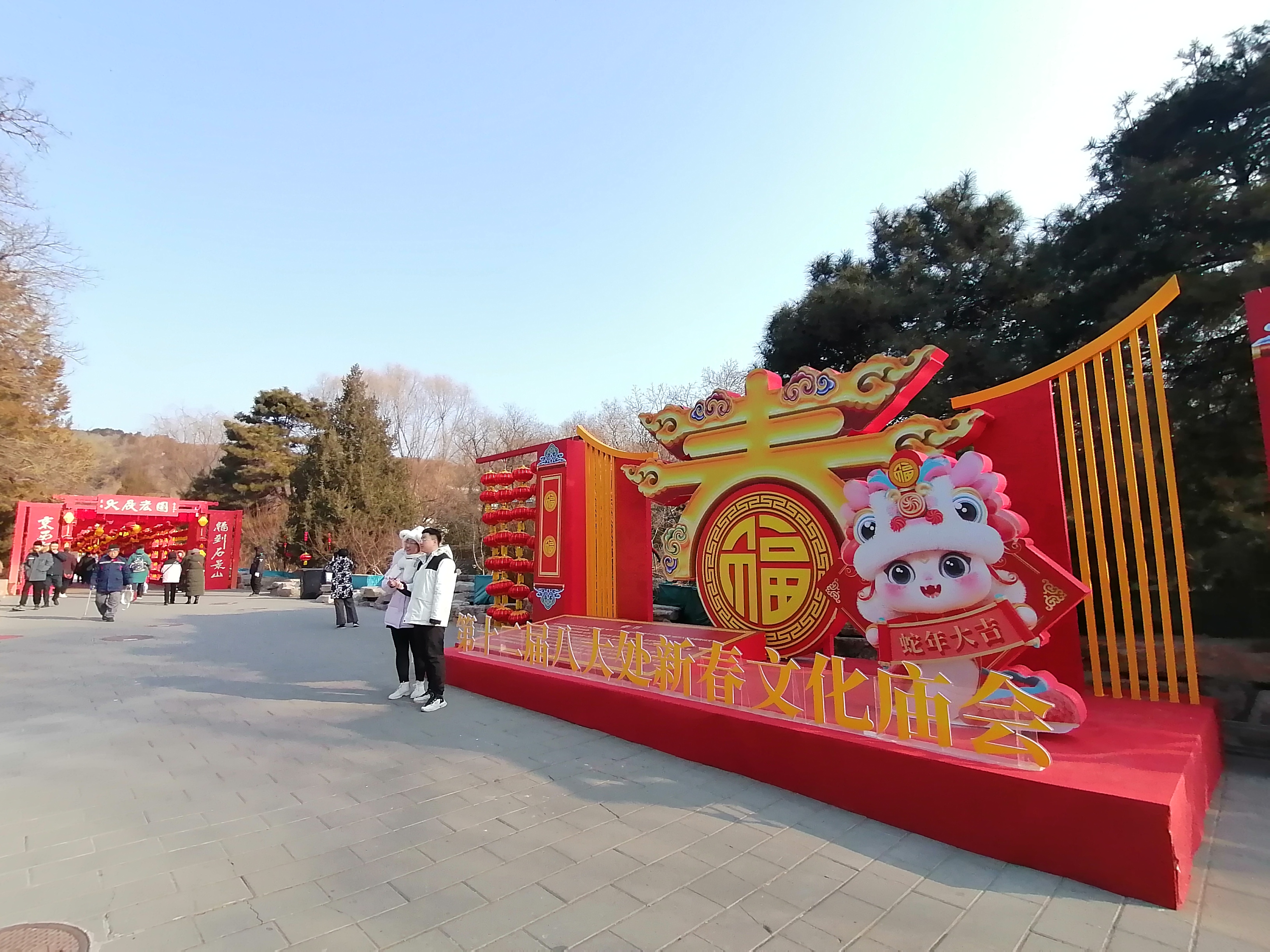 以“福满京城 春贺神州,灵蛇迎春 巳巳欢喜”为主题的第十二届八大处新春文化庙会火热进行中,众多游客前来观赏游玩。