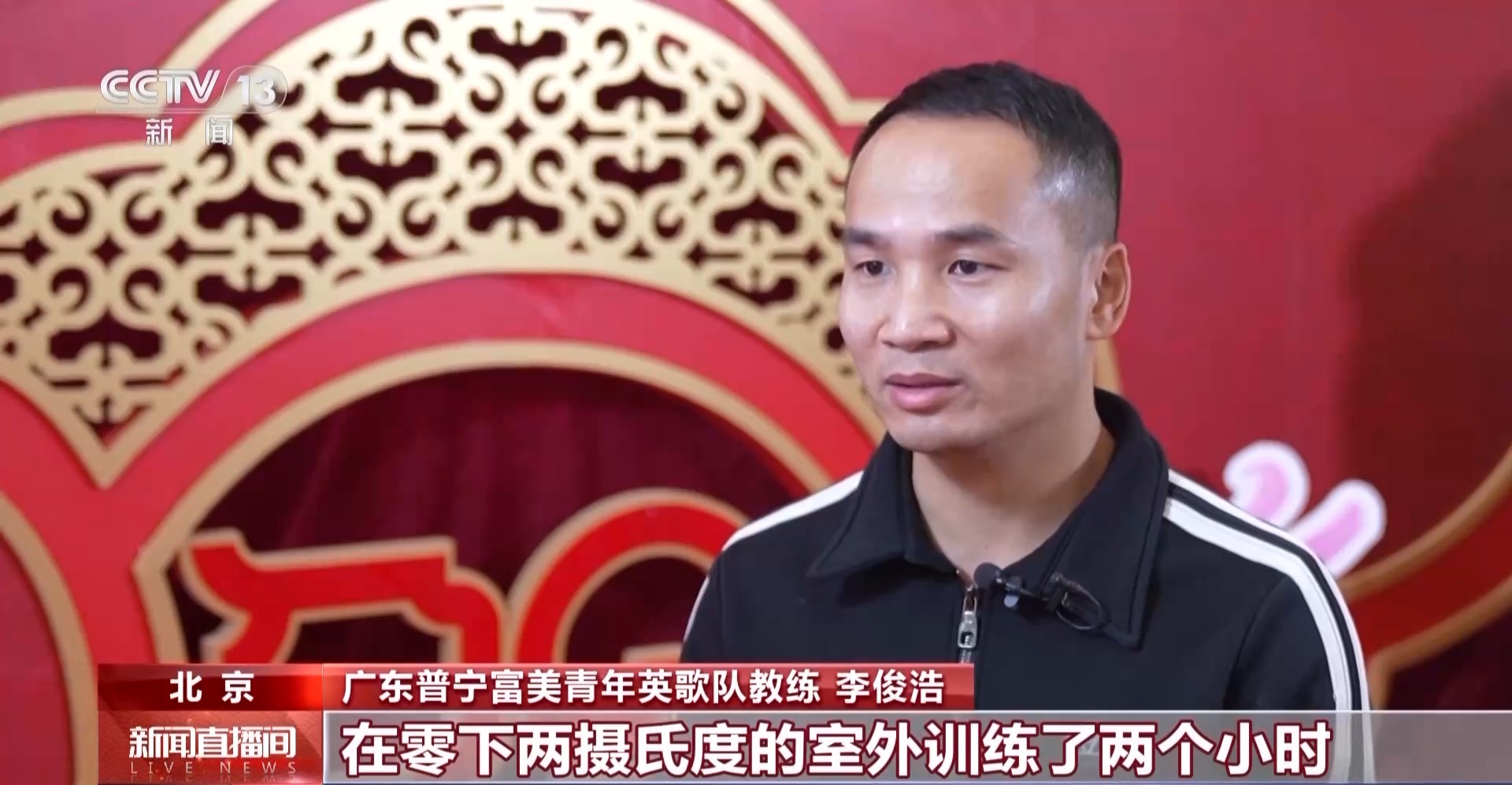 广东普宁富美青年英歌队教练 李俊浩:我印象最深刻的就是我们刚开始排那一版,一直卡不到拍上,我们想跳出效果,我们回去在酒店是因为找不到场地。我记得有一天是零下2℃,所有队员在零下2℃的室外训练了两个小时,我们是非常刻苦的,这就是英歌精神。