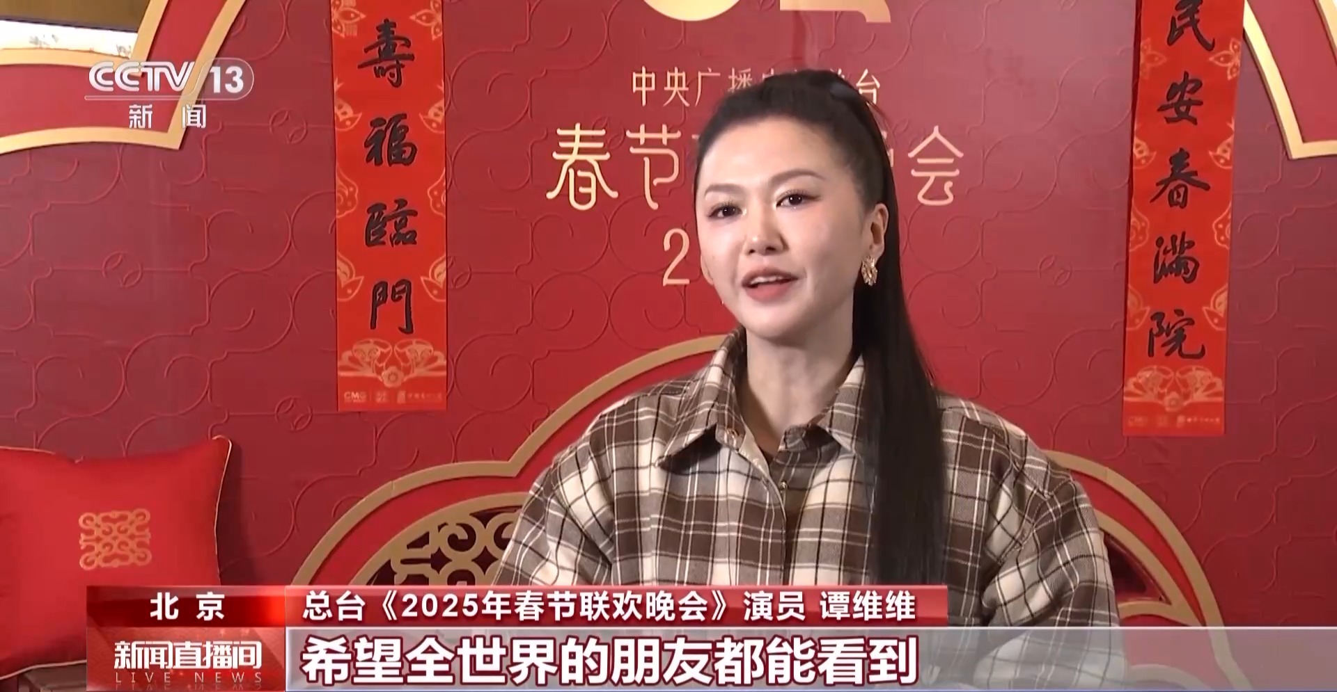 中央广播电视总台《2025年春节联欢晚会》演员 谭维维:这是一个非常燃非常有朝气的、很有少年感的一个节目,希望全世界的朋友都能看到我们,听到我们中国的声音。