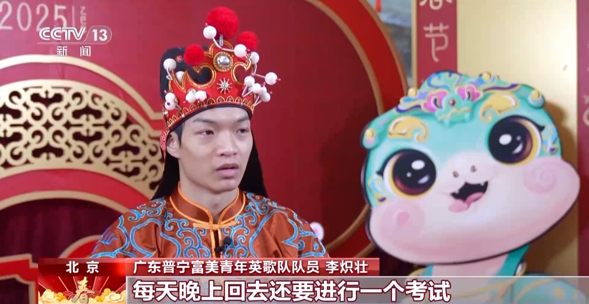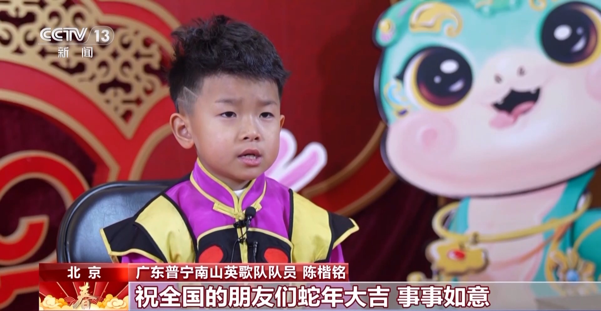 广东普宁南山英歌队队员 陈楷铭:让全国的朋友们认识我们的潮汕非遗,祝全国的朋友们蛇年大吉,事事如意。