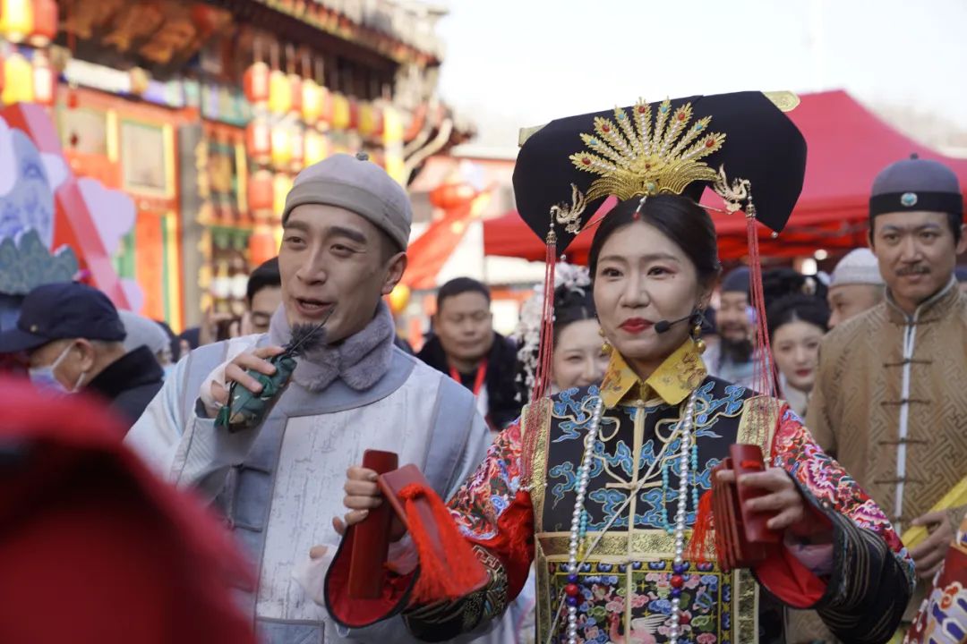 1月29日,农历大年初一,厂甸庙会正式拉开帷幕,琉璃厂东街、西街被装扮得流光溢彩,洋溢着浓浓的年味儿。庙会上,传统民俗与现代创意交相辉映,形成了一幅幅生动多彩的节日画卷。作为本次厂甸庙会的重要参与者,西城文保剧社“宣南往士”表演团队的演员们已经仔细穿戴好传统服饰,开始了他们的表演,生动再现了古代货郎货娘走街串巷、售卖货物的场景。