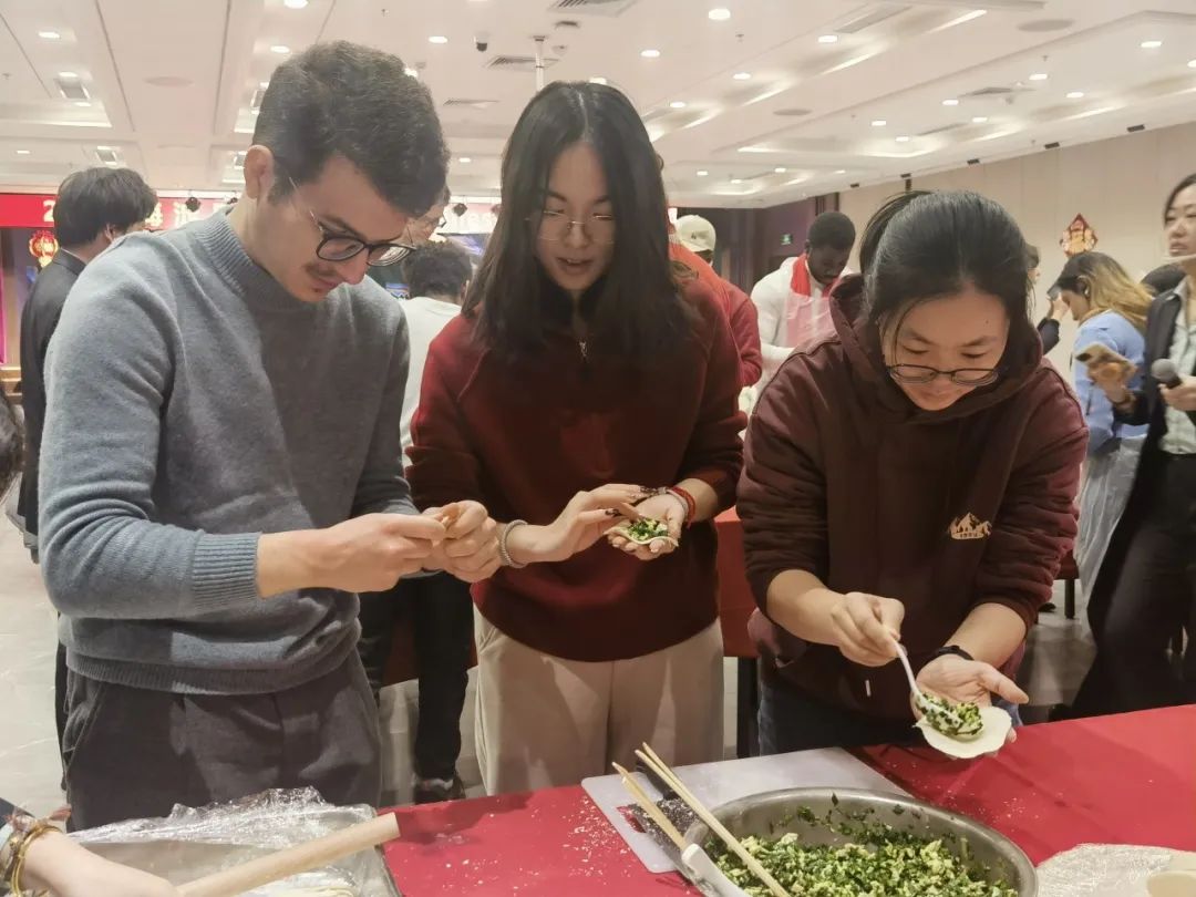 活动中,大家一边包饺子,一边交流着家乡不同的文化和习俗。“大家一起包饺子,品味中华传统美食,是一场年味十足的文化体验。”来自北京航空航天大学的越南留学生越霞说。清华大学学生江海晴说:“跟北京本地的同学聊天,交流不同的过年习俗。感谢活动精心策划,让同学们在活动中能够同时吃到大年初一的饺子、大年初二的面条,正月十五的汤圆以及美味的菜品。”