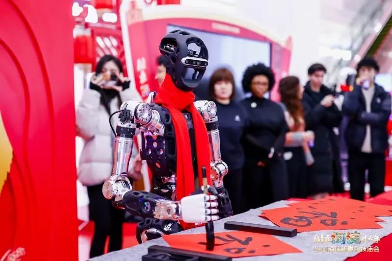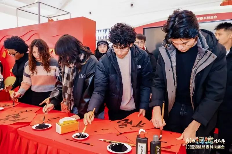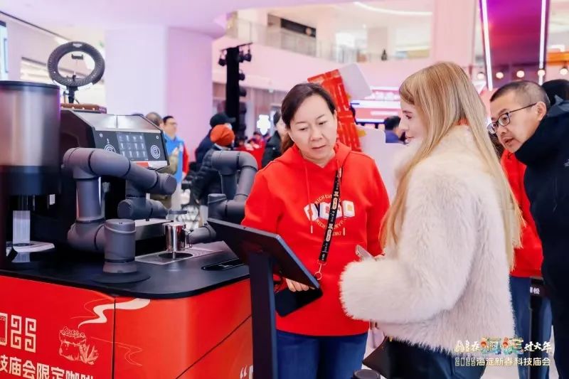 值得一提的是,此次品春会前,海淀青年们还来到了“AI在海淀过大年”2025海淀新春科技庙会海淀五棵松万达广场主会场,和AI机器人同写“福”字,体验机器人制作咖啡,观看人形机器人玩转“京剧”和“变脸”……感受 AI 带来的震撼与新奇,以及满满的春节仪式感。