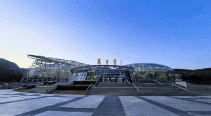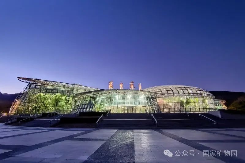 夜幕下的展览温室如一颗璀璨明珠般光彩夺目,展区内500余种万余株绚丽花草与五光十色的光影造景交相辉映,打造出一个奇幻的植物世界。