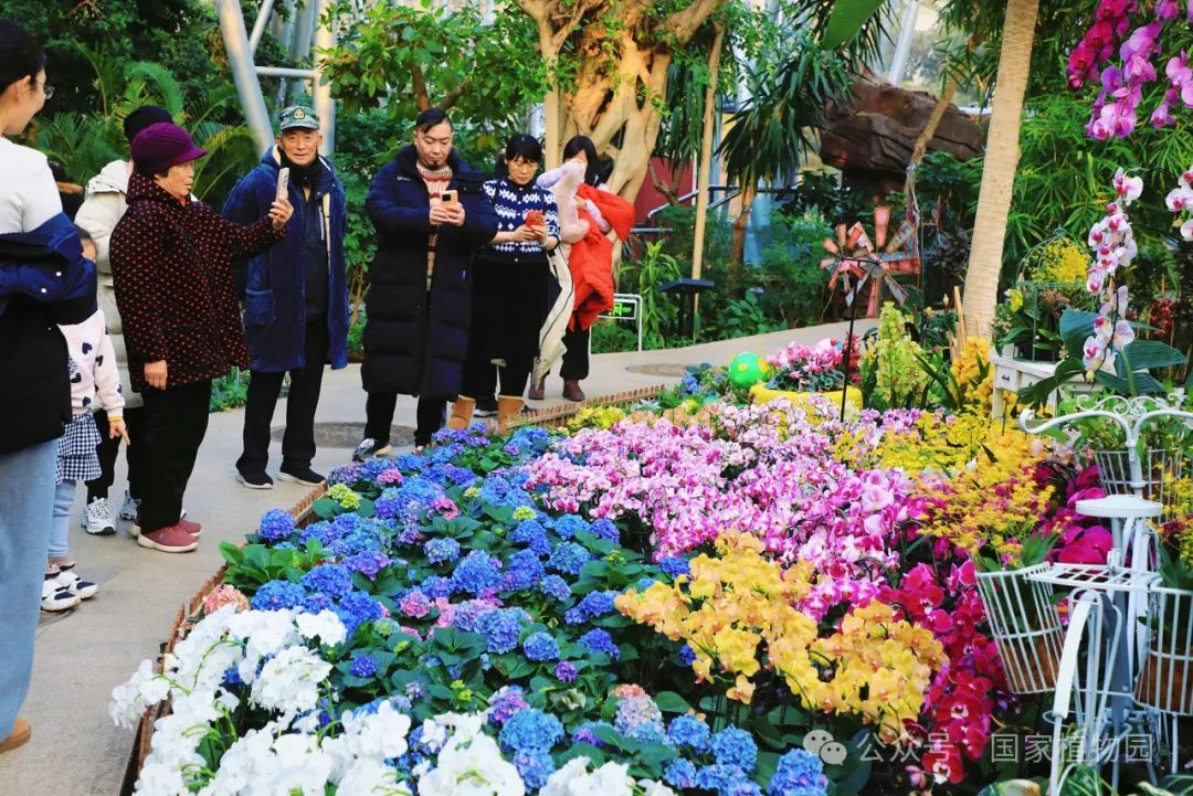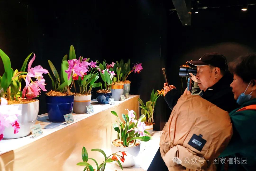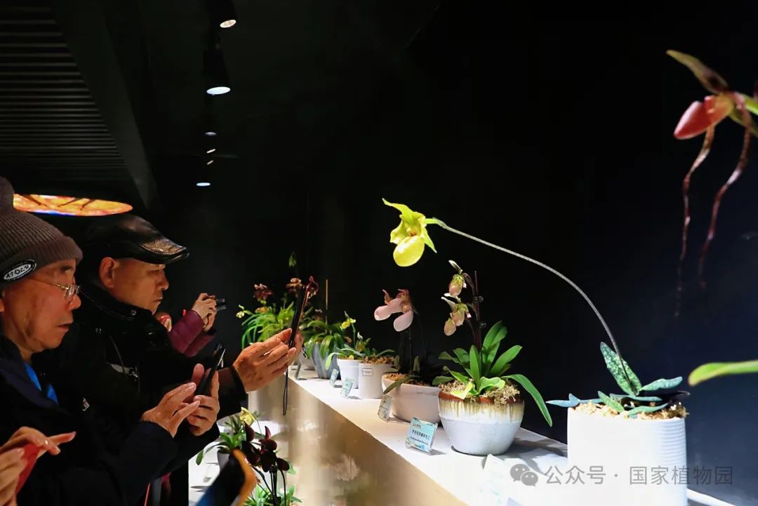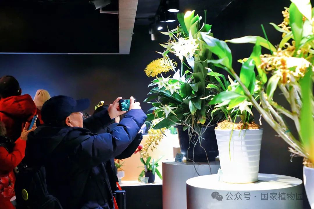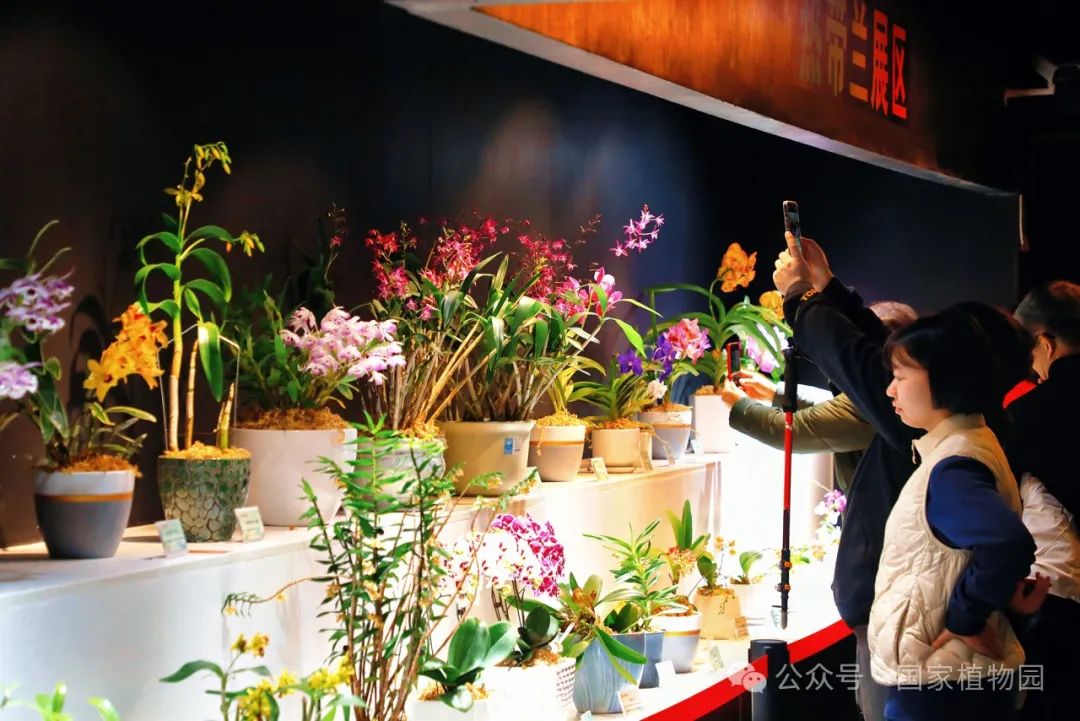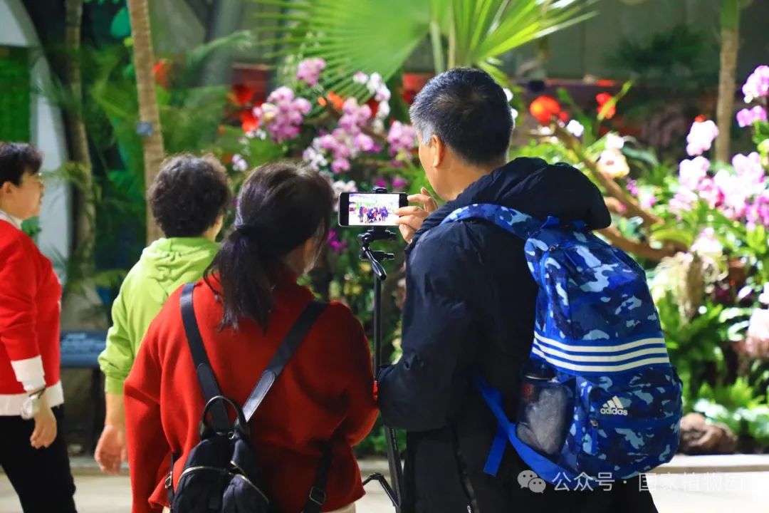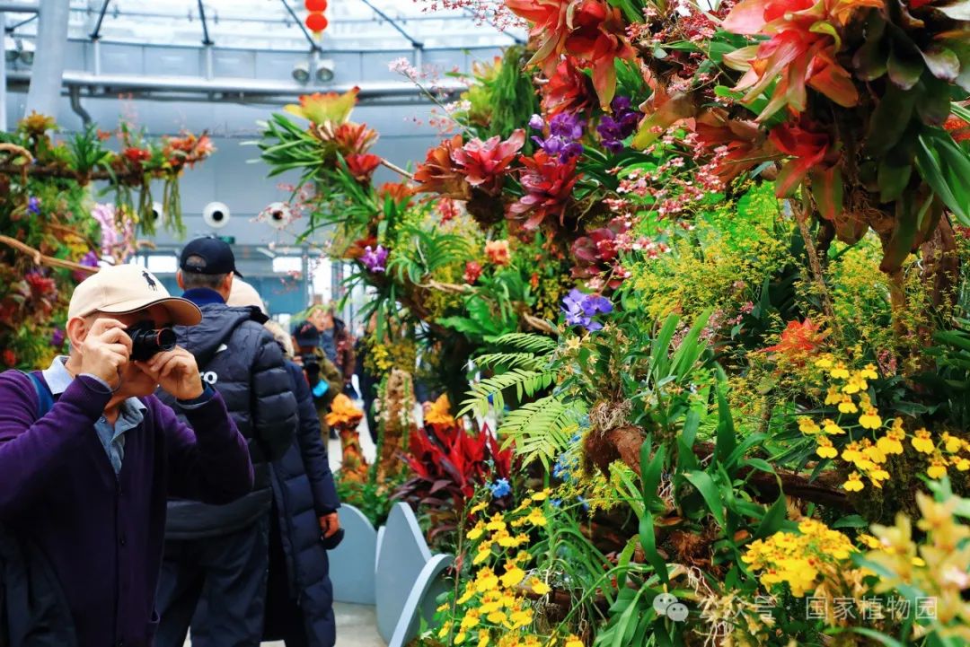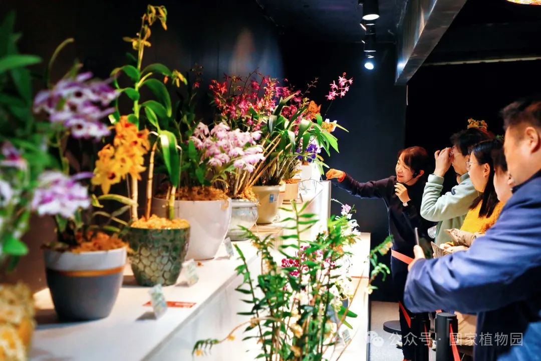 在精品兰花展区,游客可以欣赏到130余种珍稀兰花的别样风情,如新奇的生肖兰花‘蛇皮兰’、造型独特的大魔鬼石斛和大彗星兰等都成为了爱好者们争相拍照的明星植物。与此同时,还有国家植物园的植物专家带领参与者进行妙趣横生的植物探索,为大家讲解植物的生长习性和丰富的科普知识。