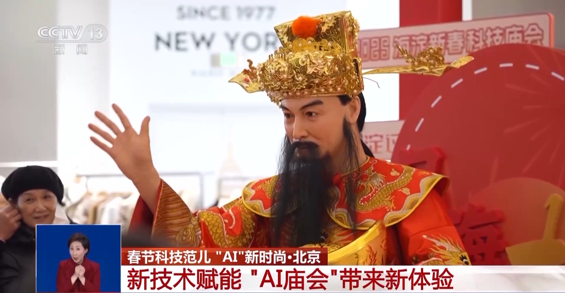 在北京厂甸庙会,游客们不仅可以欣赏到传统节目表演,还可以看到穿上红马甲的机器狗和拜大年的机器人。