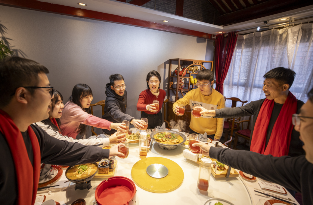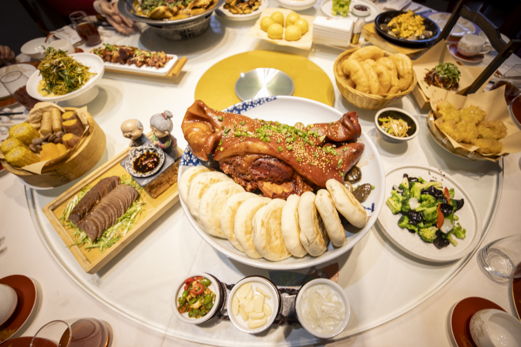 在一桌桌团圆饭中,游客们可以品尝到传承百年的非遗美食贺式酱猪脸,肥而不腻的猪头肉夹入焦香酥脆的延庆火勺中,一口咬下,唇齿留香,堪称非遗美食“绝配”。