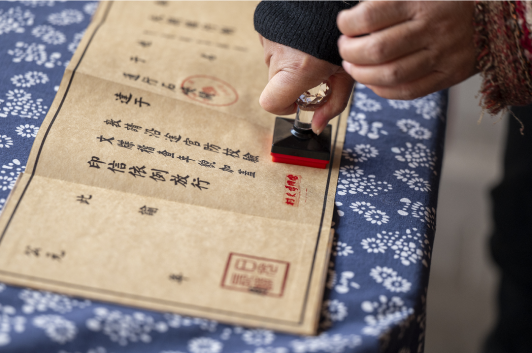 走进石峡村,满满的“仪式感”扑面而来。游客们身披斗篷,在古村落里打卡拍照,手持“通关文牒”和“石峡通宝”,在村中盖章留念,体验古人酒坊打酒的乐趣,参与文旅互动小游戏,游客们乐在其中。