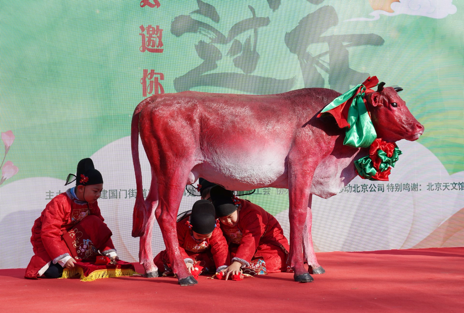 2月3日,正月初六,恰逢立春之日,东城区建国门街道第十八届立春文化节在北京古观象台举行,东城区还首次在钟鼓楼院内开展“鞭春牛”民俗表演,人们喊春、鞭打春牛,欢欢喜喜迎接春的到来。