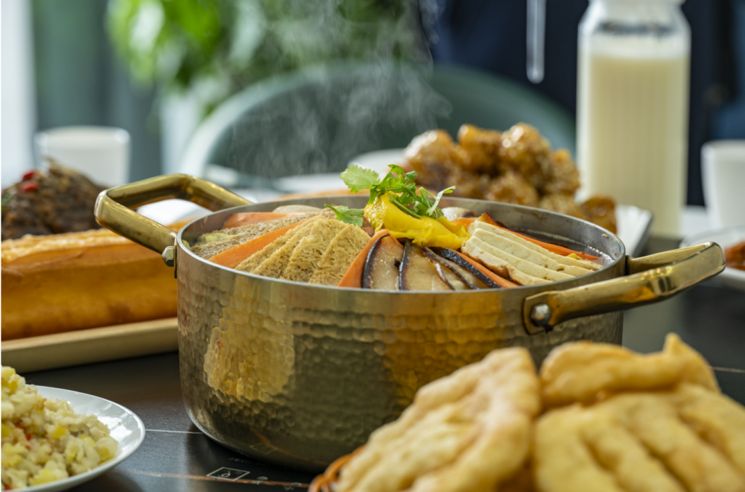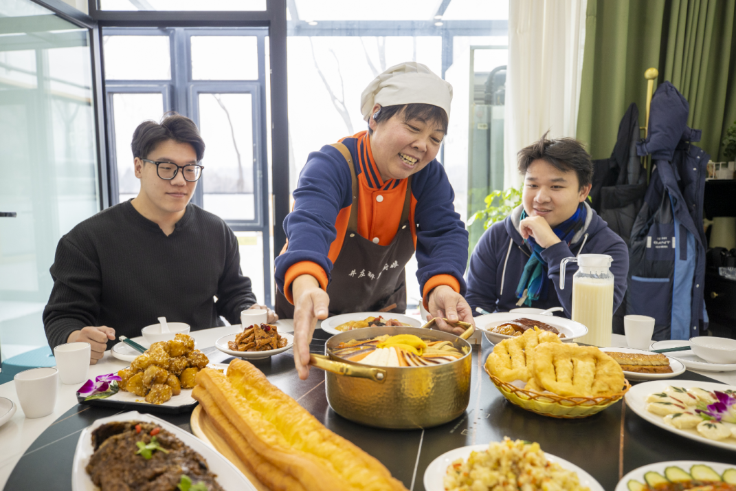 深井水,当地豆,酸浆豆水点豆腐……因传统的火盆锅和豆腐宴闻名遐迩的井庄镇柳沟村,在春节假期迎来了游客高峰。一桌丰盛的豆腐宴,菜品琳琅满目,色香味俱全,引得不少游客前来尝鲜。