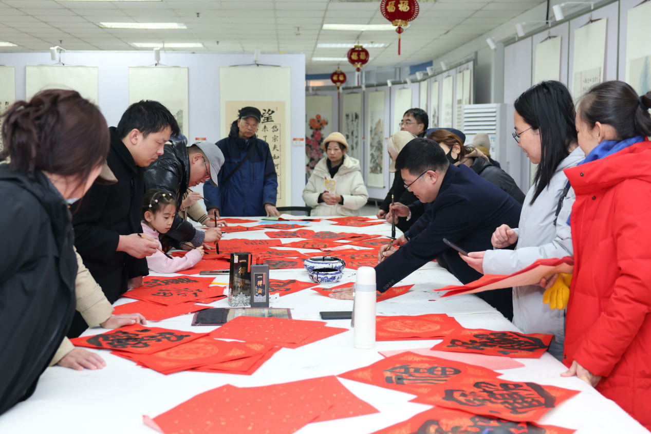 非遗生肖面塑体验活动也为新春增添了别样色彩。活动现场,家长和孩子们在专业老师的指导下,亲手参与非遗面塑制作,感受非遗文化的独特魅力与深厚内涵。同时,“五气连枝 墨韵飘香”丰台区群众书画作品展在丰台区文化中心大楼一层书画展厅同步开展。一幅幅精美的书画作品吸引观众驻足欣赏,展现了中华传统文化艺术的独特魅力。而“送福到家”环节,将新春的美好祝福送到每一位群众手中,传递着浓浓的节日温情。