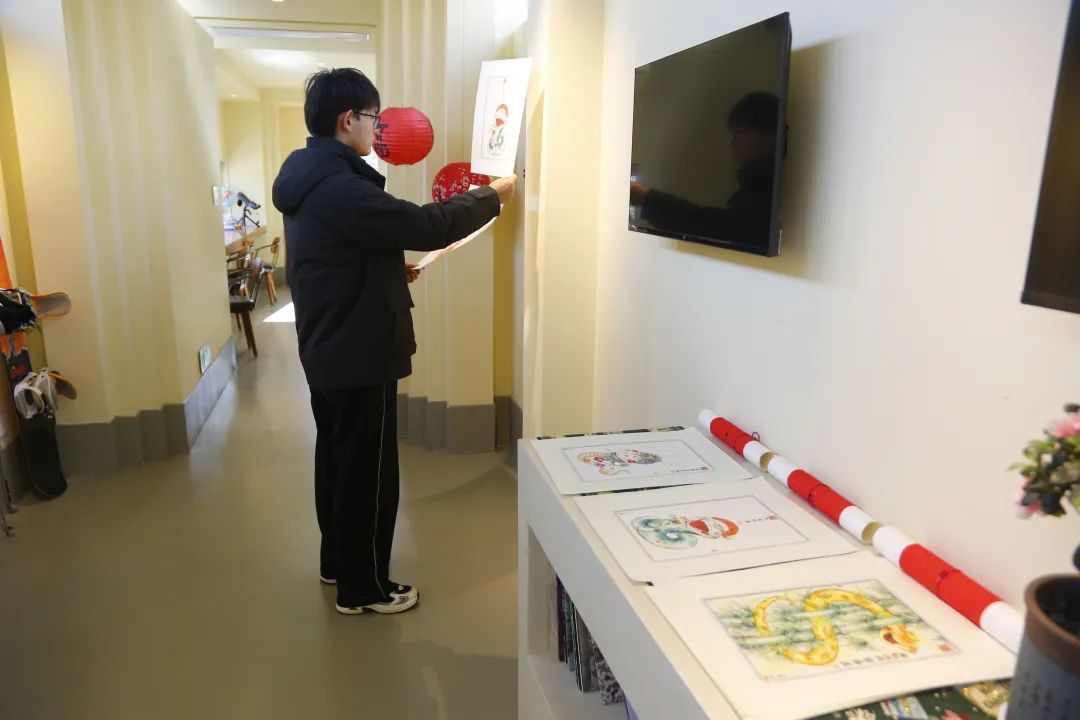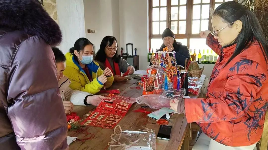 与此同时,张山营辖区的各大民宿在春节期间也纷纷推出了特色活动。在后黑龙庙村的大隐于世民宿,非遗编结串珠技艺的展示和体验活动不仅吸引了众多游客前来参与,还带动了村里西西里西餐厅和渔来渔往鱼火锅餐厅的生意,每天前来用餐的客人络绎不绝。而在佛峪口村的长木徐生民宿,武强年画的展出不仅为民宿增添了浓浓的年味,也让入住的游客大饱眼福,感受到了传统文化的魅力。