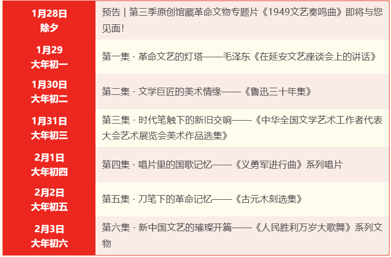 《1949文艺奏鸣曲》系列视频发布时间表