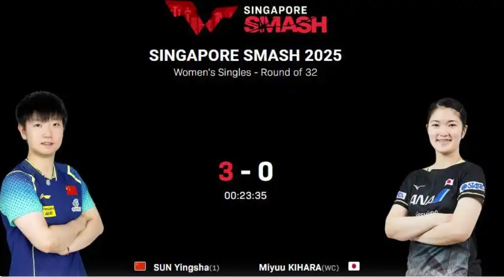2月5日晚,WTT新加坡大满贯进行了多场较量。在女单1/16决赛中,孙颖莎直落三局,淘汰日本选手木原美悠,晋级16强。