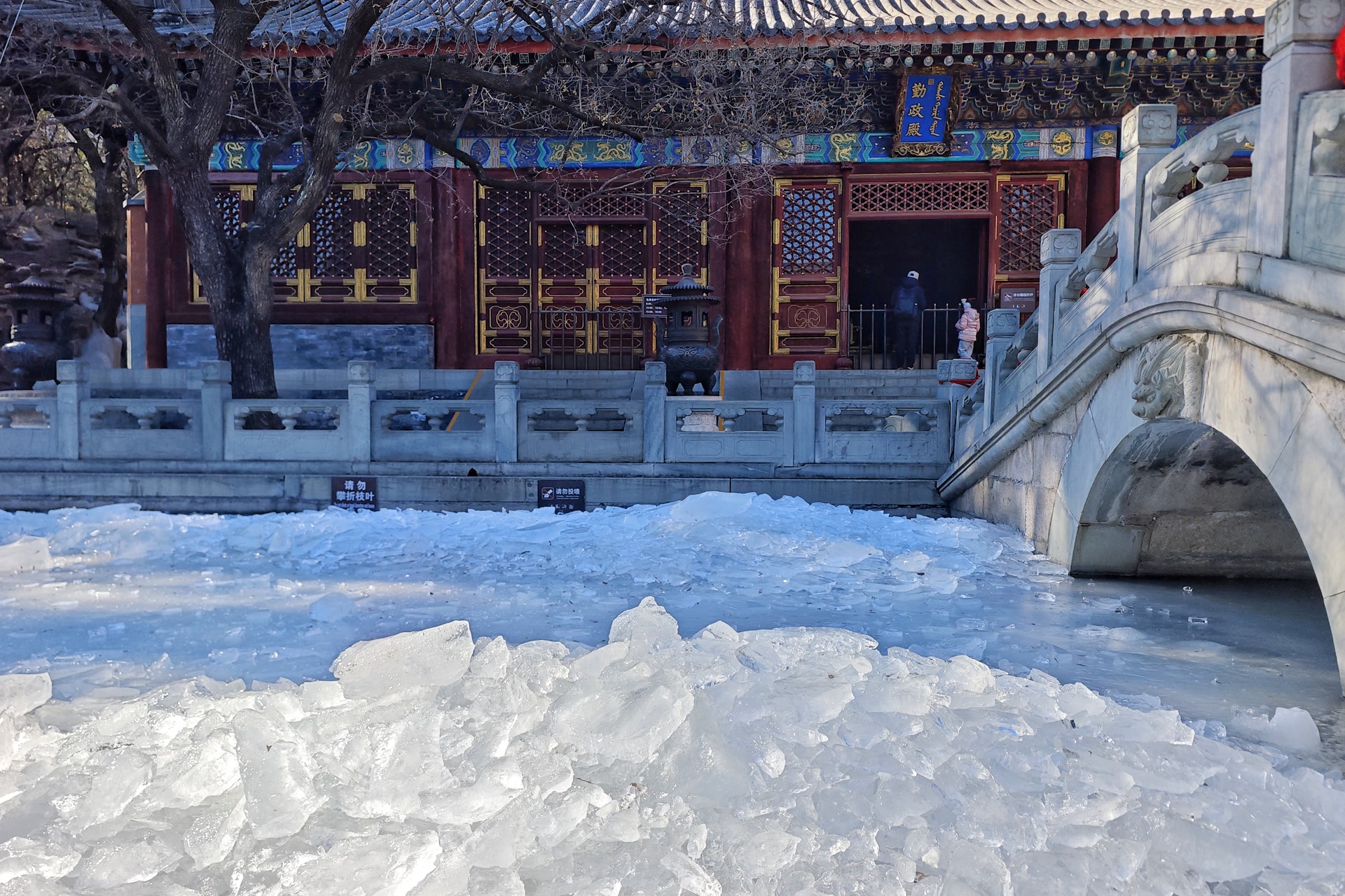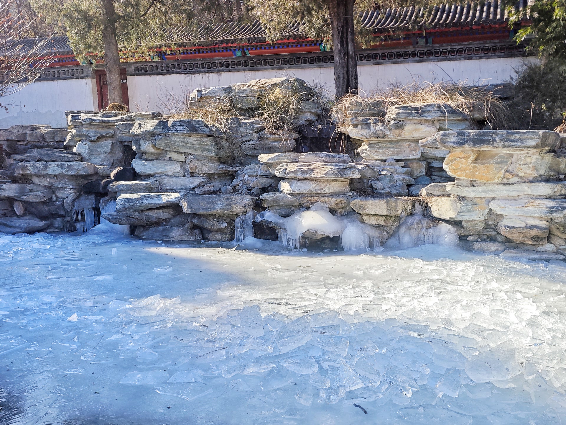 同样,园中听雪轩前的冰层叠加也呈现出形态各异的美景。