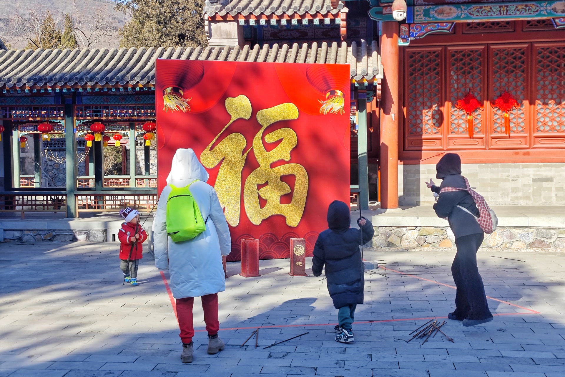 正月初八(2月5日),新春假期结束后的首个工作日,北京迎来了蓝天白云的晴好天气。北京香山公园新春布置依旧洋溢着浓浓的年味儿。不少市民游客到此登山、打卡祈福。