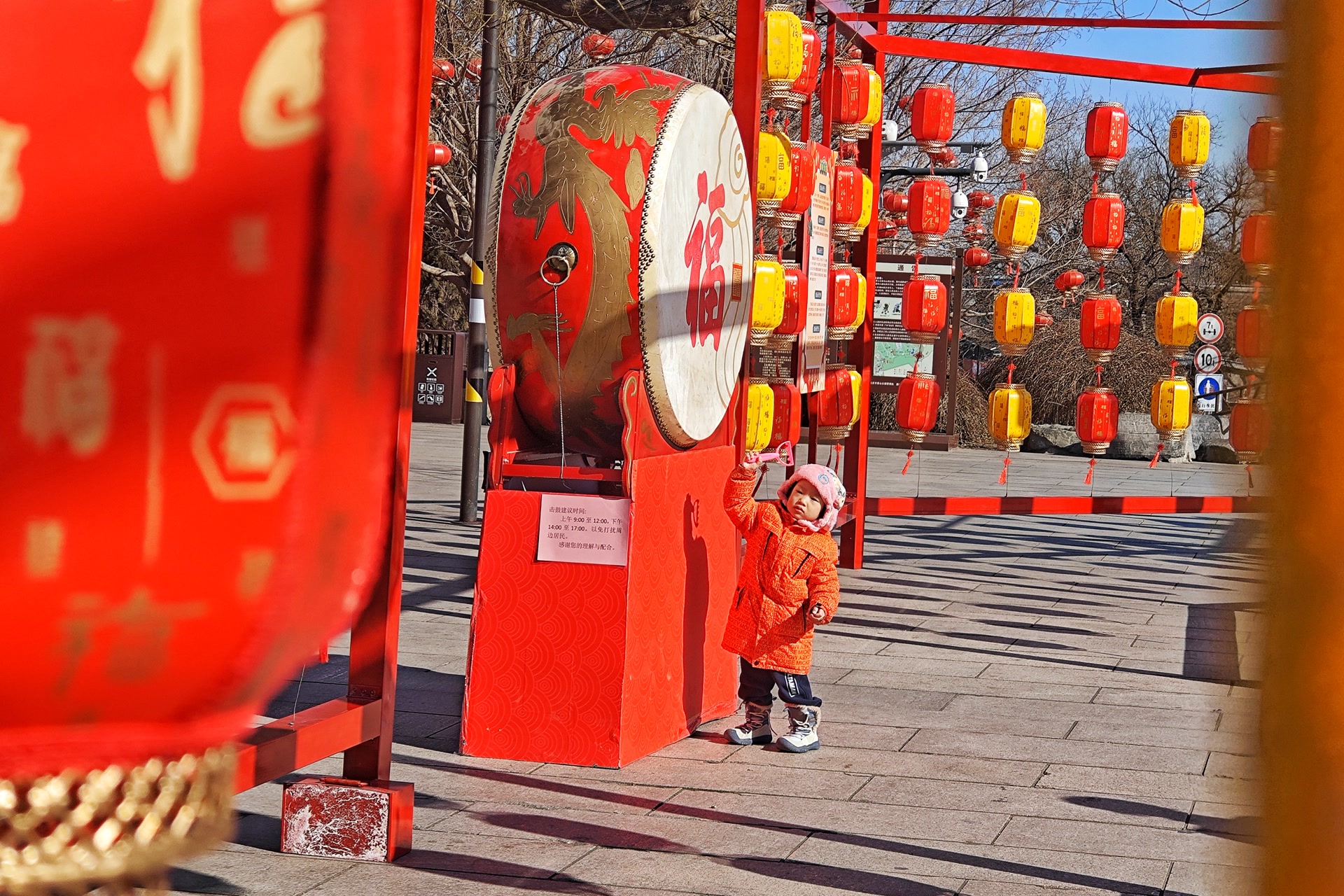 东门外的“红火”的节日布置吸引了小朋友的目光。