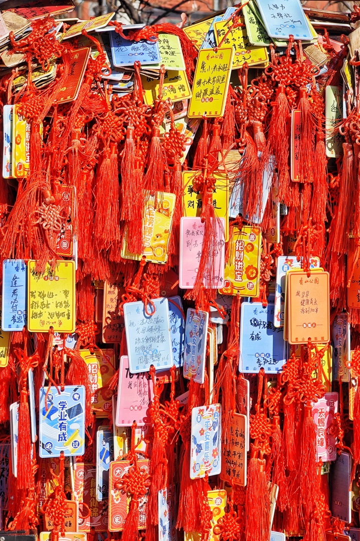 五颜六色的祈福牌承载着民众对新一年的期盼。
