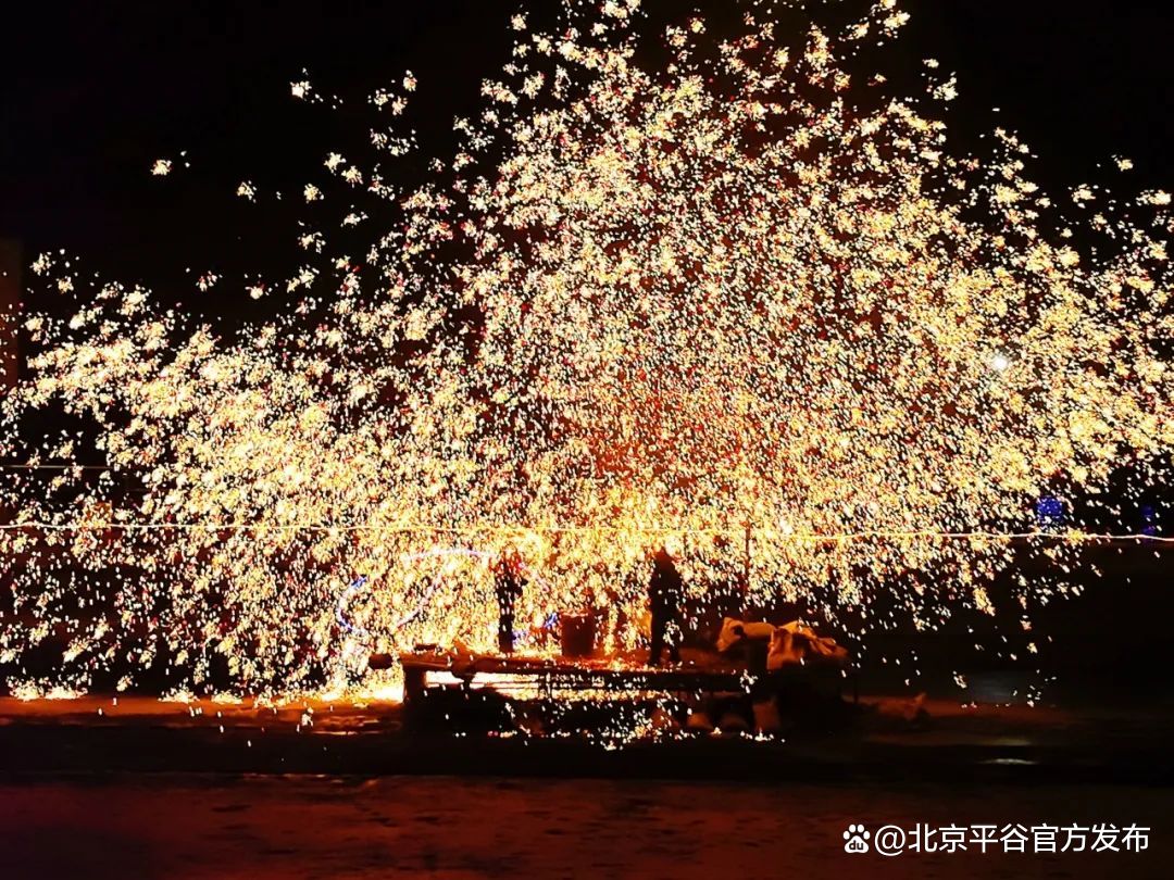 除了彩灯,每天晚上都有千年绝技打铁花、风火轮、非遗火壶演出,非遗传承人们以铁水为墨,夜空为纸,给游客们带来火树银花不夜天的震撼。