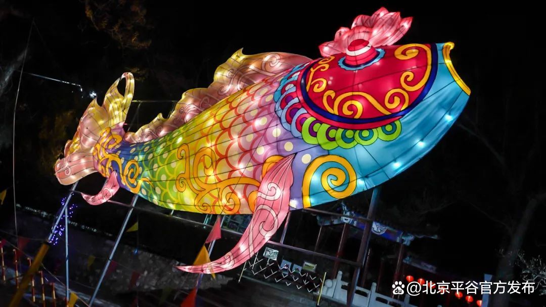 充满年味儿的新春花灯夜游,一步一景,美轮美奂,用五光十色的国潮彩灯点亮平谷,以一场华丽的传统文化艺术盛宴,给游客们带来一场视觉盛宴。