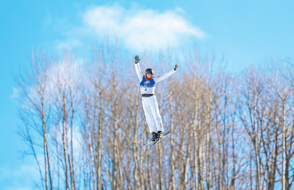 哈尔滨亚冬会上,中国选手李心鹏获得自由式滑雪男子个人空中技巧金牌。 本报记者 潘之望摄