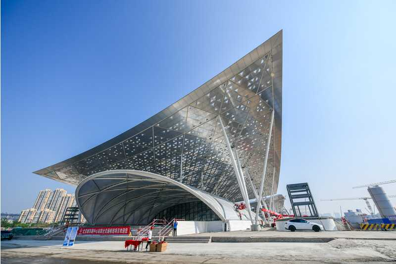2025年,枢纽工程02标段将全面进入二次结构、装饰装修、机电安装、“京帆”屋盖及配套市政道路收尾施工阶段。