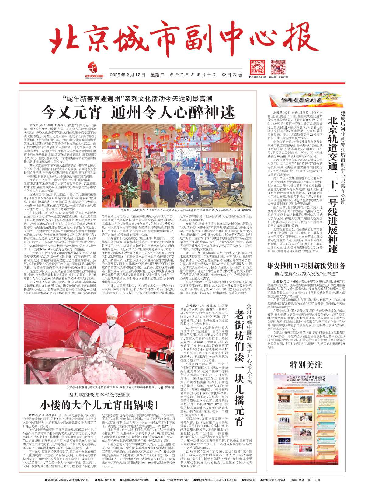 热闹游园活动、丰富非遗体验、精彩文艺演出……元宵节期间,北京市文旅局联合各区、各有关单位将继续丰富公共文化服务供给,开展各类群众文化活动784项、913场,陪伴市民、游客共庆元宵佳节。详情>>