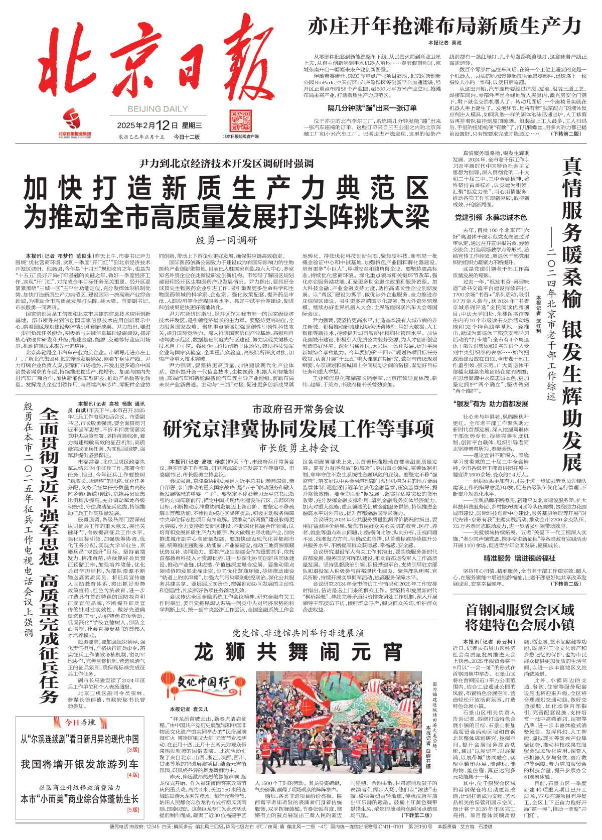 从零部件配套到新能源整车下线,从民营火箭到商业卫星上天,从自主创新药到手术机器人落地……春节假期刚过,京城东南开启一幅幅未来产业创新图景。伴随着赛诺菲、SMC等重点产业项目落地,北京医药创新公园BioPark、空天街区、亦庄综保区等创新平台加速建设,经开区正重点布局58个产业园、超600万平方米产业空间,抢滩布局未来产业,打造新质生产力典范区。详情>>