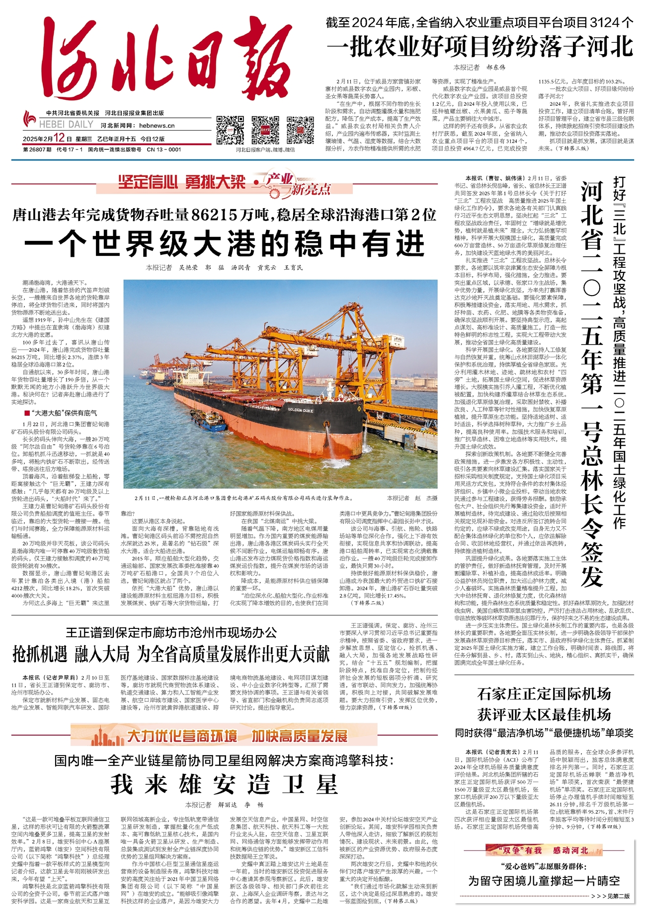 2024年,河北唐山港完成货物吞吐量86215万吨,同比增长2.37%,连续3年稳居全球沿海港口第2位。自通航以来,30多年时间,唐山港年货物吞吐量增长了190多倍,从一个默默无闻的地方小港跃升为世界级大港。秘诀何在?详情>>