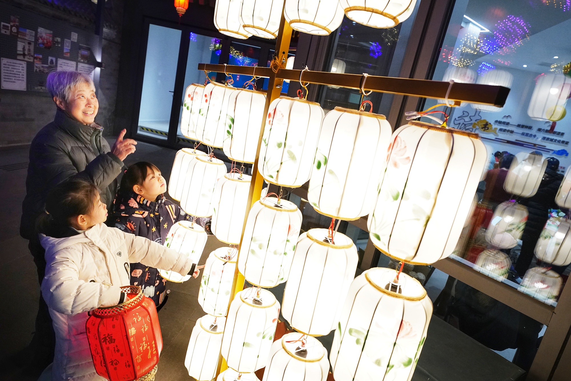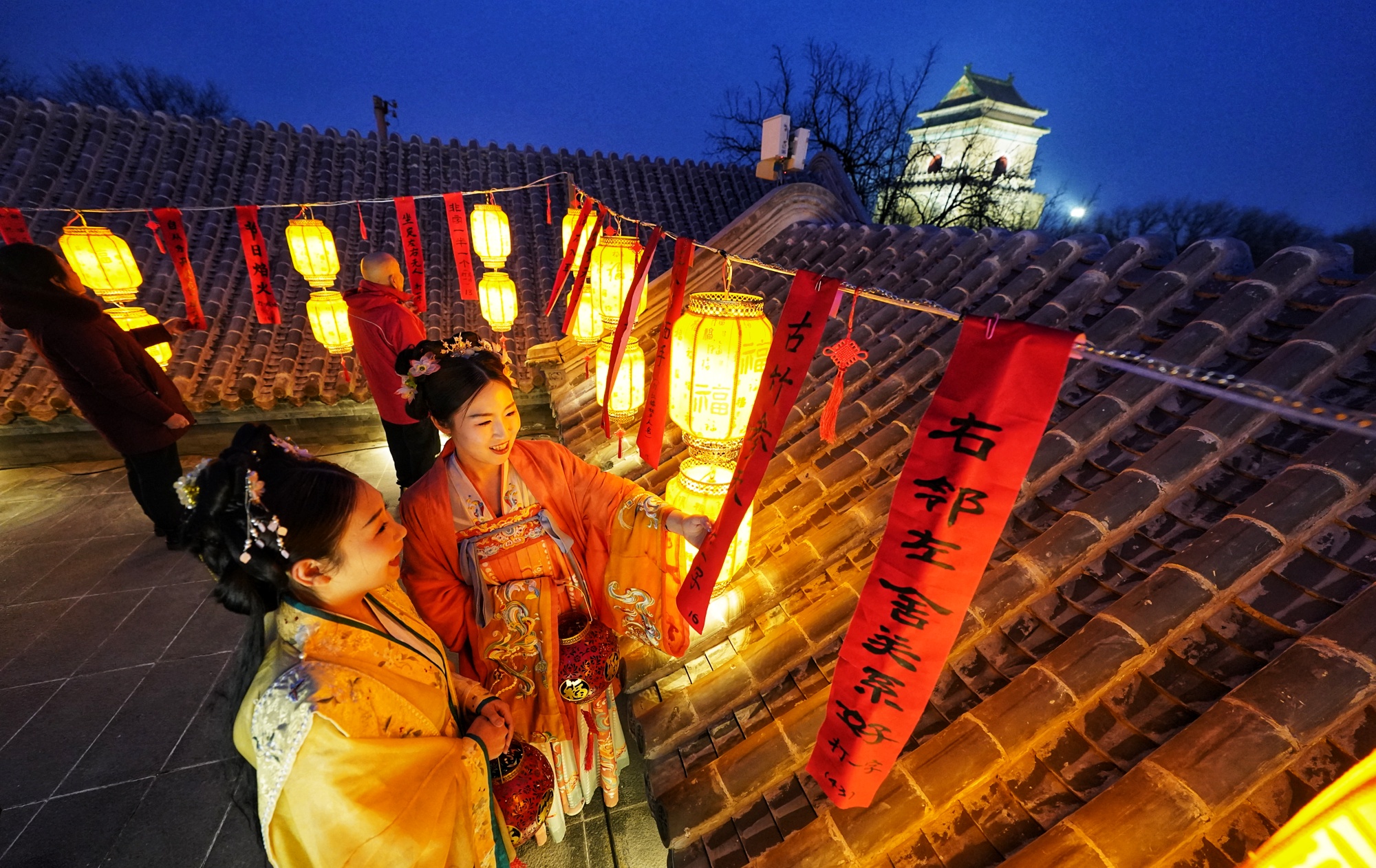 2月11日晚,什刹海街道“鼓韵穿云 灯河照岁”元宵节活动在旧鼓楼社区举行。