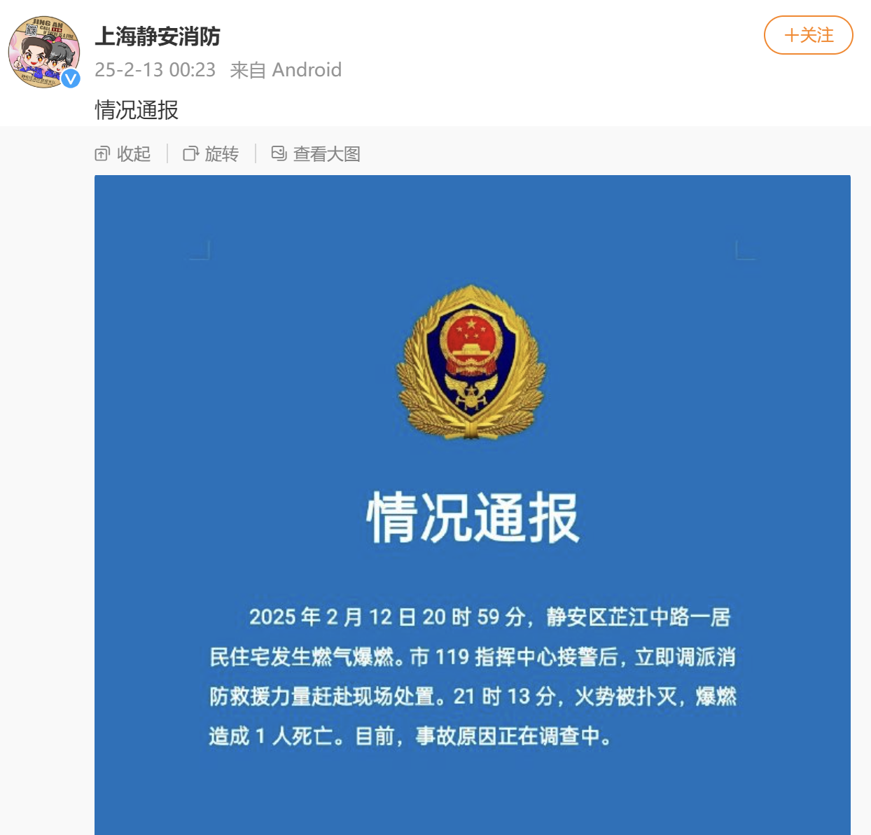 上海静安消防2月13日发布情况通报: