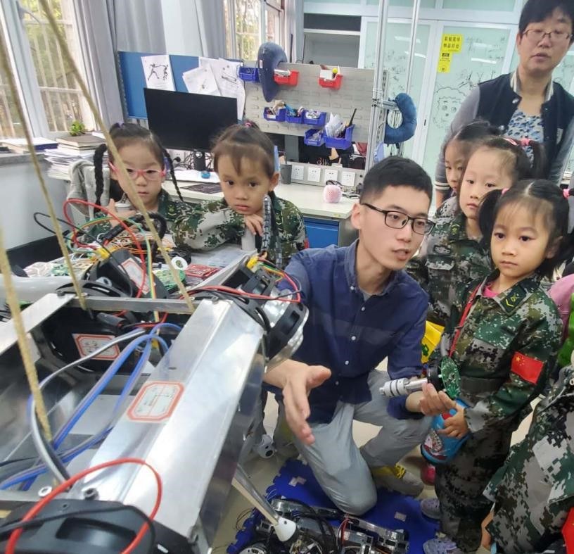 “于是,我们在构成小腿的三根碳纤维管中间增加一根,让它们紧密相连,从而更好地传递力,提高结构强度。”金永斌说。通过材料力学知识可知,物体抗弯刚度与其直径的四次方成正比,这一细小的改变让机器狗小腿的刚度显著提升,最终解决了机器人腿部强度不足的问题。