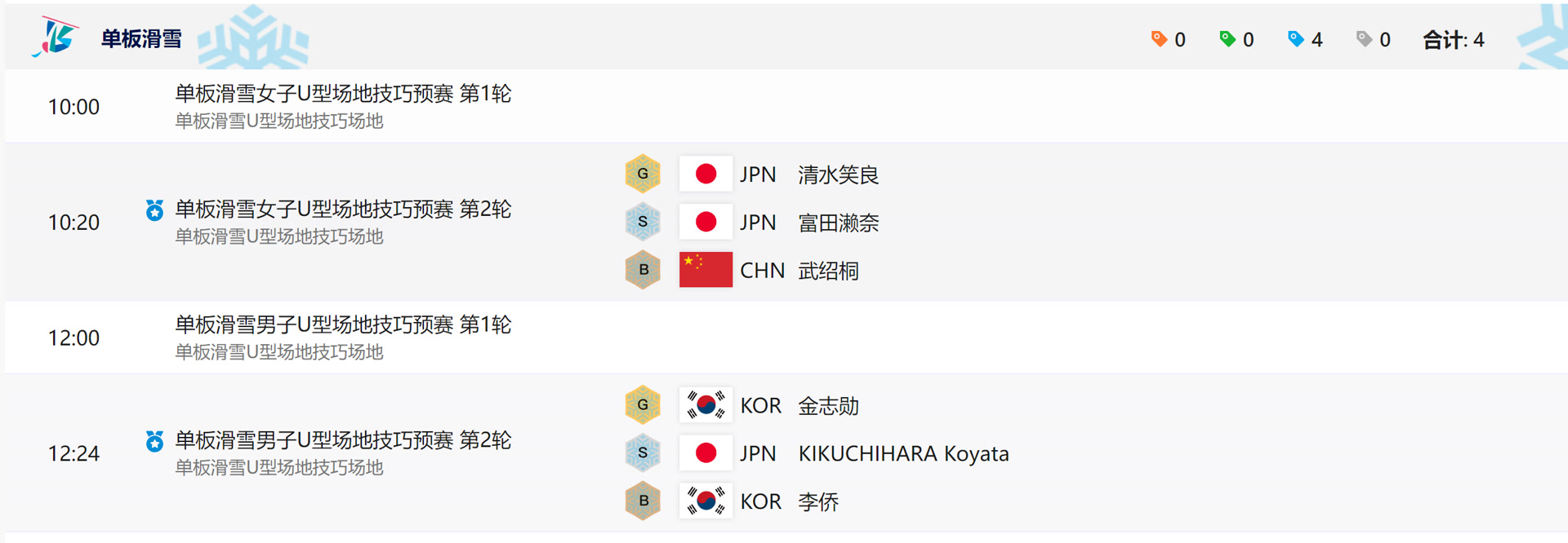 受大风天气影响,2月13日亚冬会亚布力赛区的单板滑雪U型场地技巧决赛取消,成绩按照前一个比赛日的预赛成绩作为最终成绩。