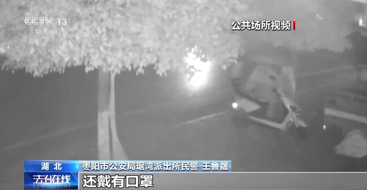 枣阳市公安局琚湾派出所民警 王鲁晟:当时嫌疑人戴有斗篷,还戴有口罩,把自己包裹得很严实,我们看不到他的脸部特征形态。